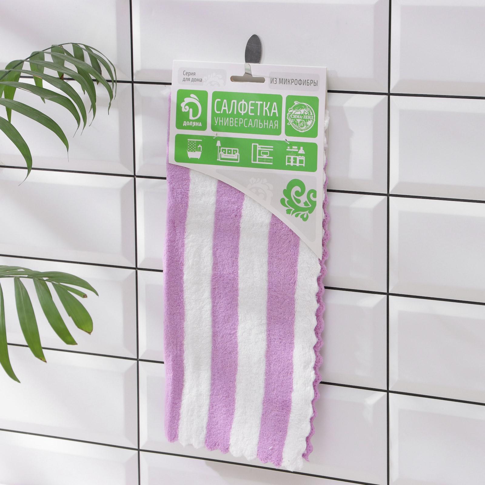 Салфетка для уборки махровая Доляна «Полоски», 30×30 см, микрофибра, цвет МИКС