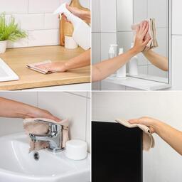 Салфетка имеет гладкую фактуру, которая позволяет очистить поверхность, не прикладывая особых усилий. Её также можно использовать для бокалов, фужеров, люстр, автомобильных стёкол и других предметов, требующих ухода.