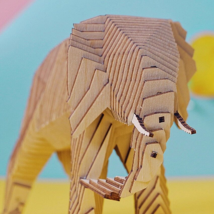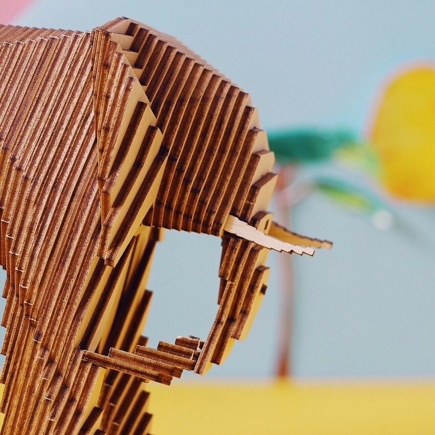 Деревянный конструктор Слон (сборка без клея) с набором карандашей UNIWOOD