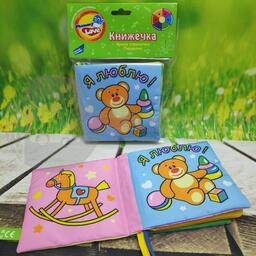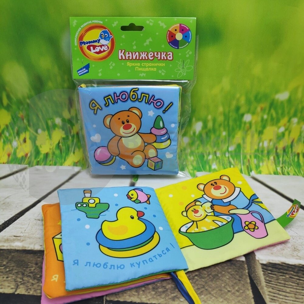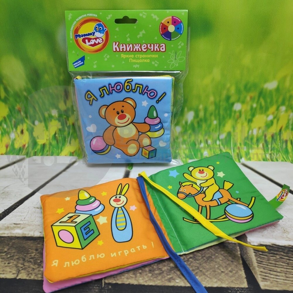 Развивающая мягкая тактильная книжка с пищалкой Я люблю (3 разворота, 8 рисунков), 1