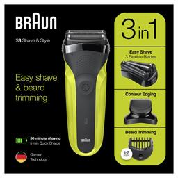 Аккумуляторная электробритва Braun Series 3 Shave&Style для мужчин — идеальный прибор 3-в-1 для ухода за волосами. Наслаждайтесь гладким бритьем, точной стрижкой бороды или щетины с помощью всего одного устройства, просто меняя головку и добавляя насадки.