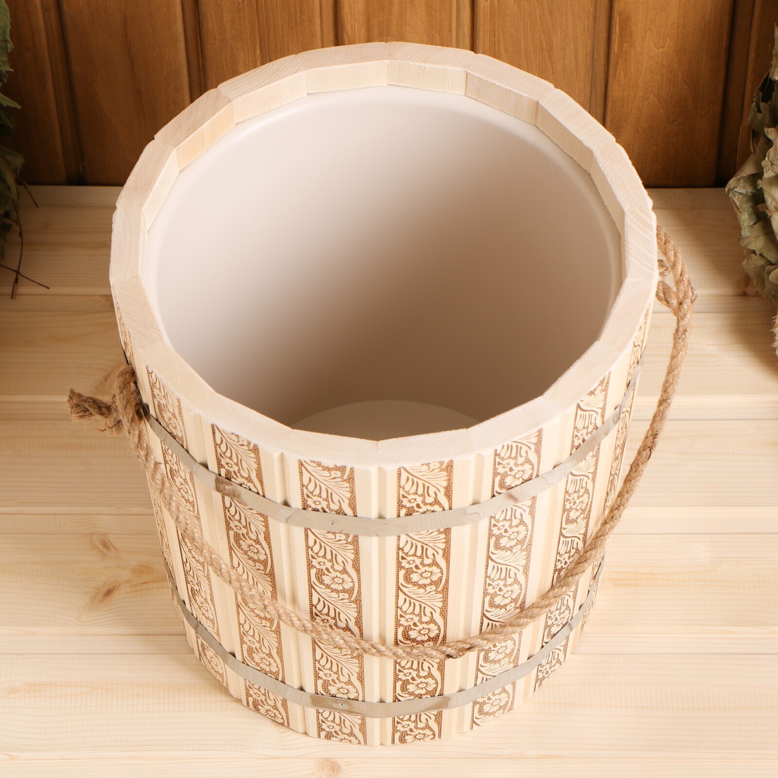 Ведро для бани, 10л, "Русские узоры", с пластмассовой вставкой