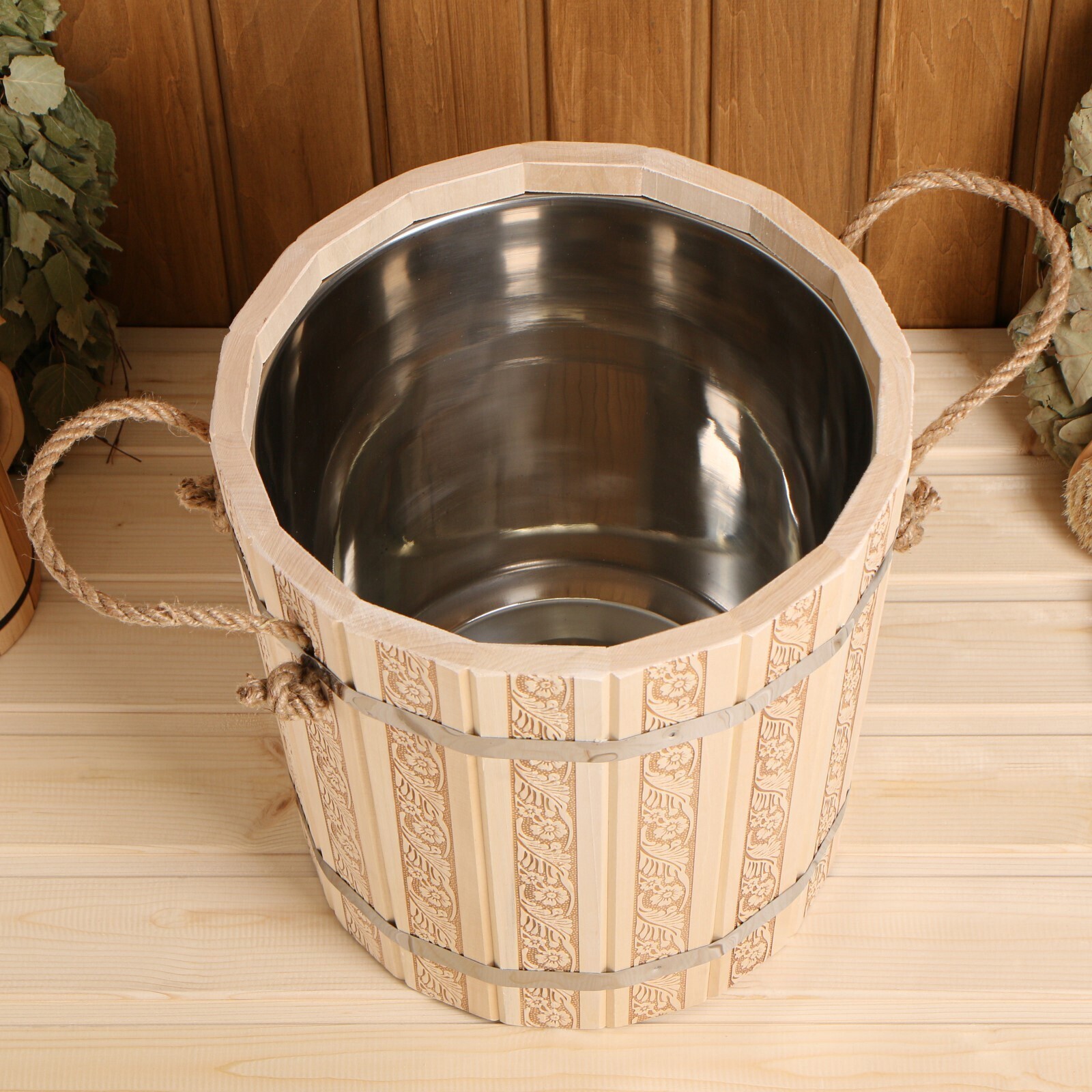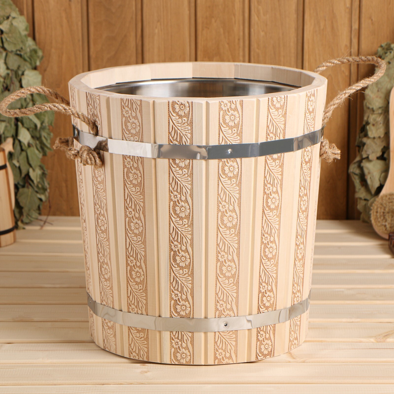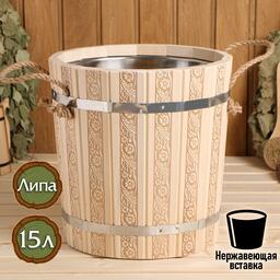 Запарник для бани, 15л, "Русские узоры", с нержавеющей вставкой