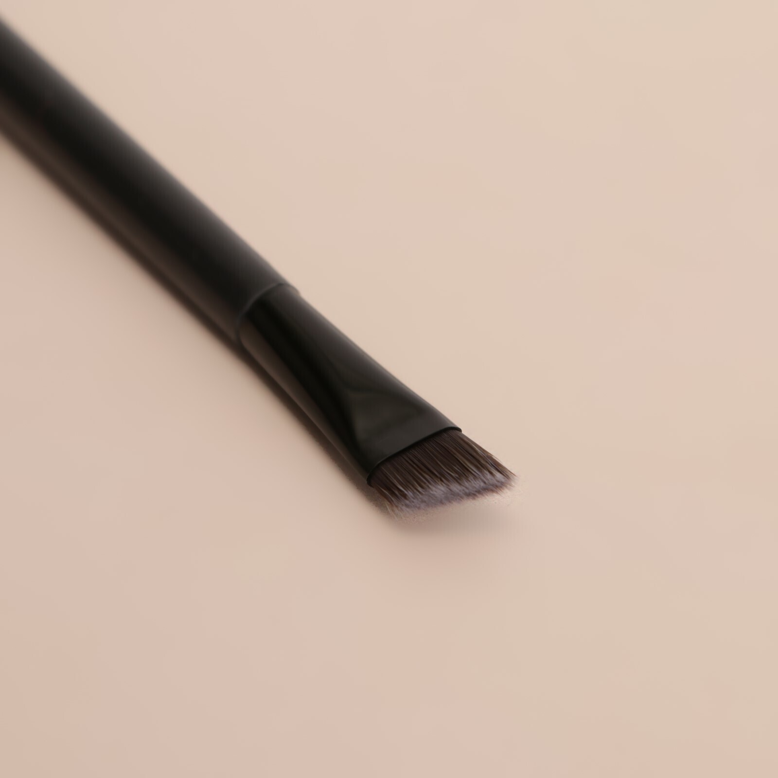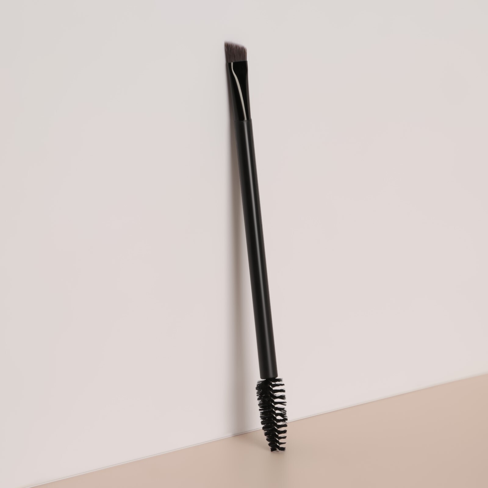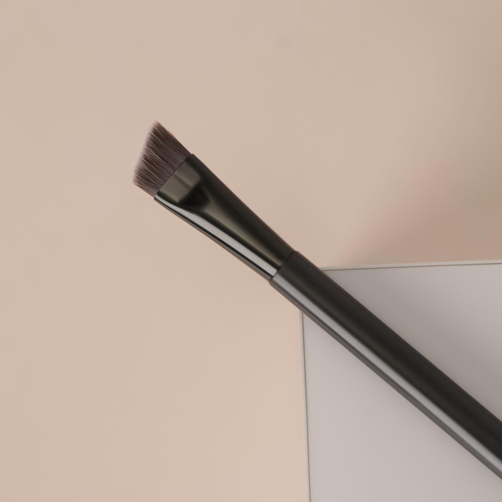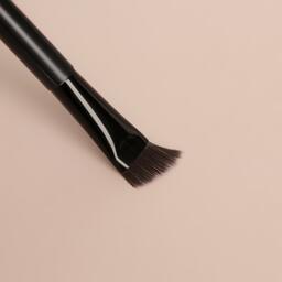 Кисть подойдёт для сухих, кремовых и гелевых текстур. Используйте её для нанесения теней, проработки бровей, прорисовки чётких линий. Щёточка справится с укладкой бровей и поможет избавиться от слипшихся ресниц.