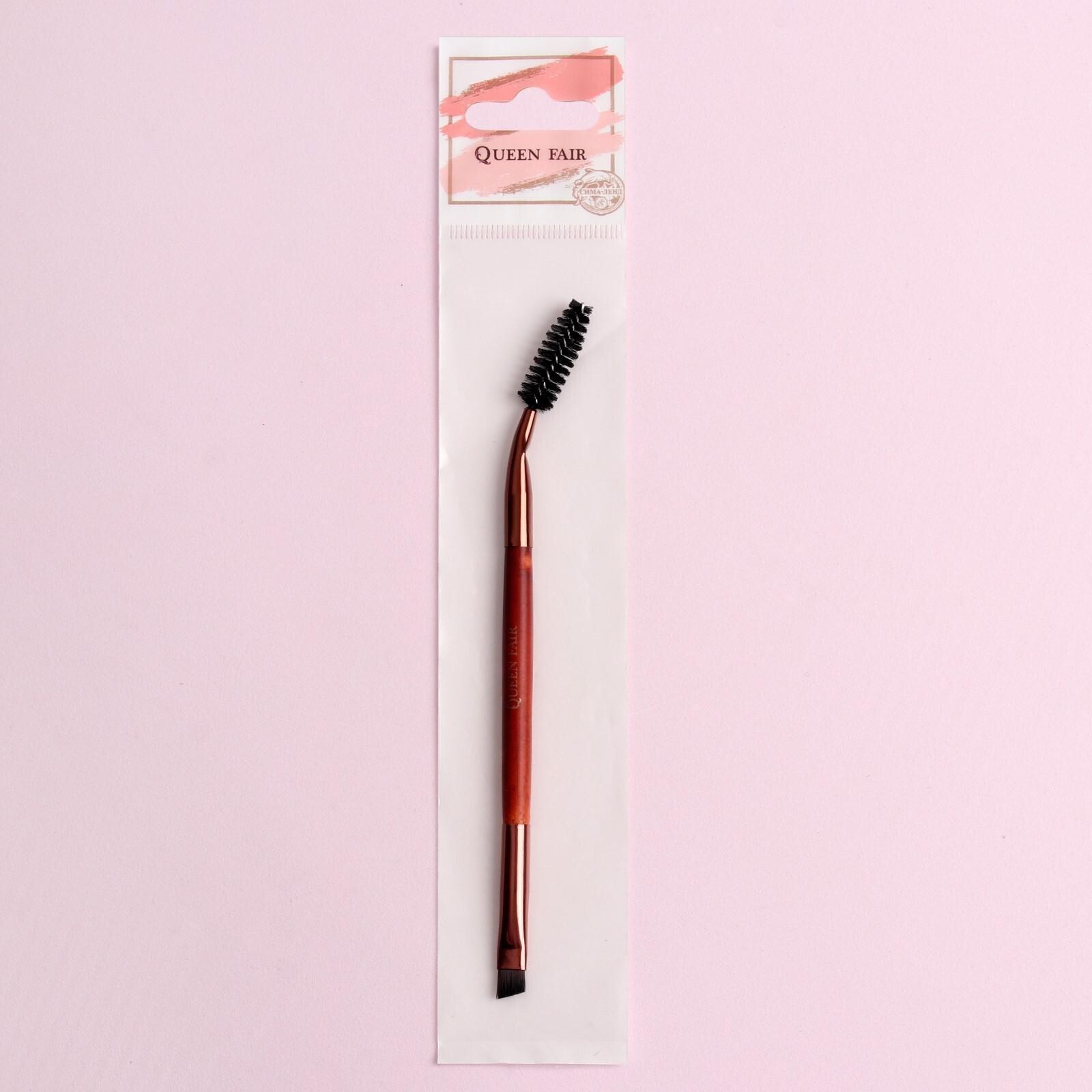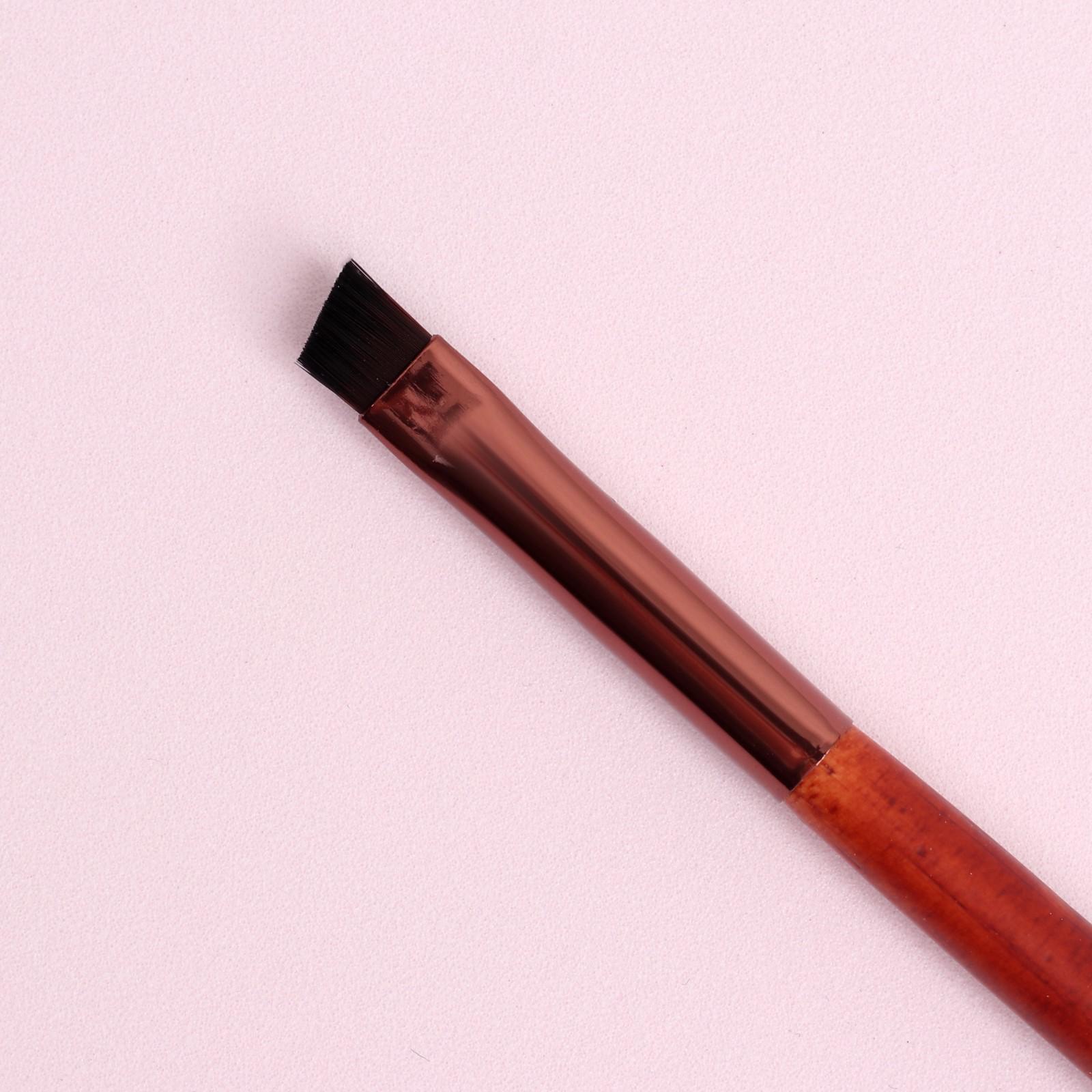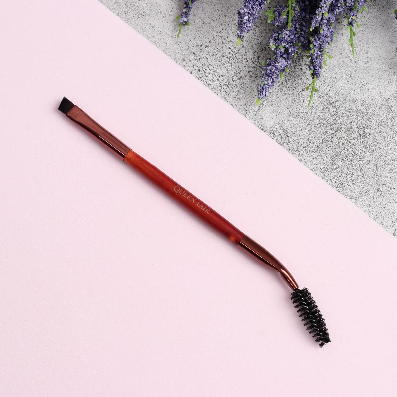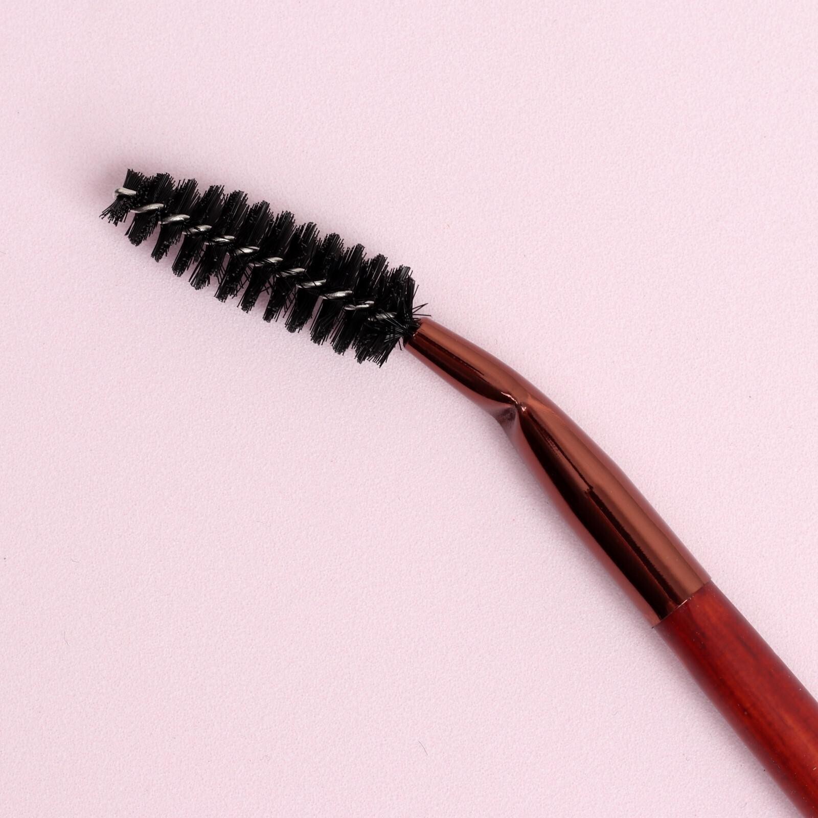 Кисть для макияжа «Brush WOOD», двусторонняя, с щёточкой, 14,5 см, цвет коричневый/золотистый