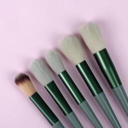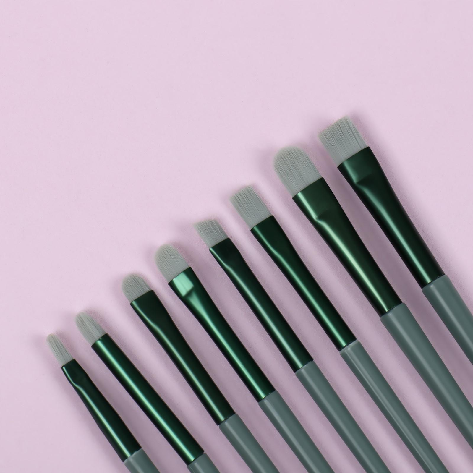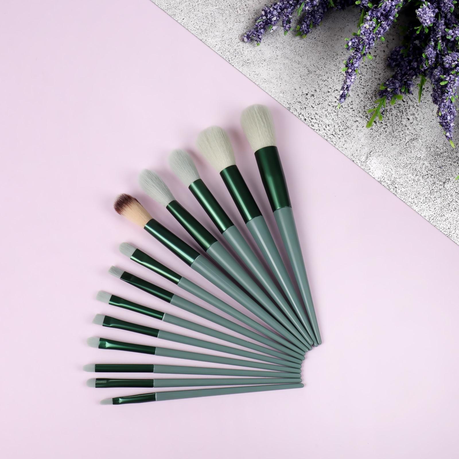Набор кистей для макияжа «Helen», 13 предметов, футляр-мешочек, цвет зелёный