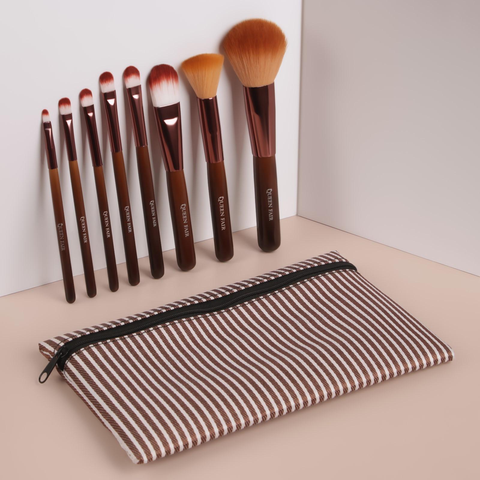 Набор кистей для макияжа «Полоски», 8 предметов, чехол на молнии, цвет коричневый