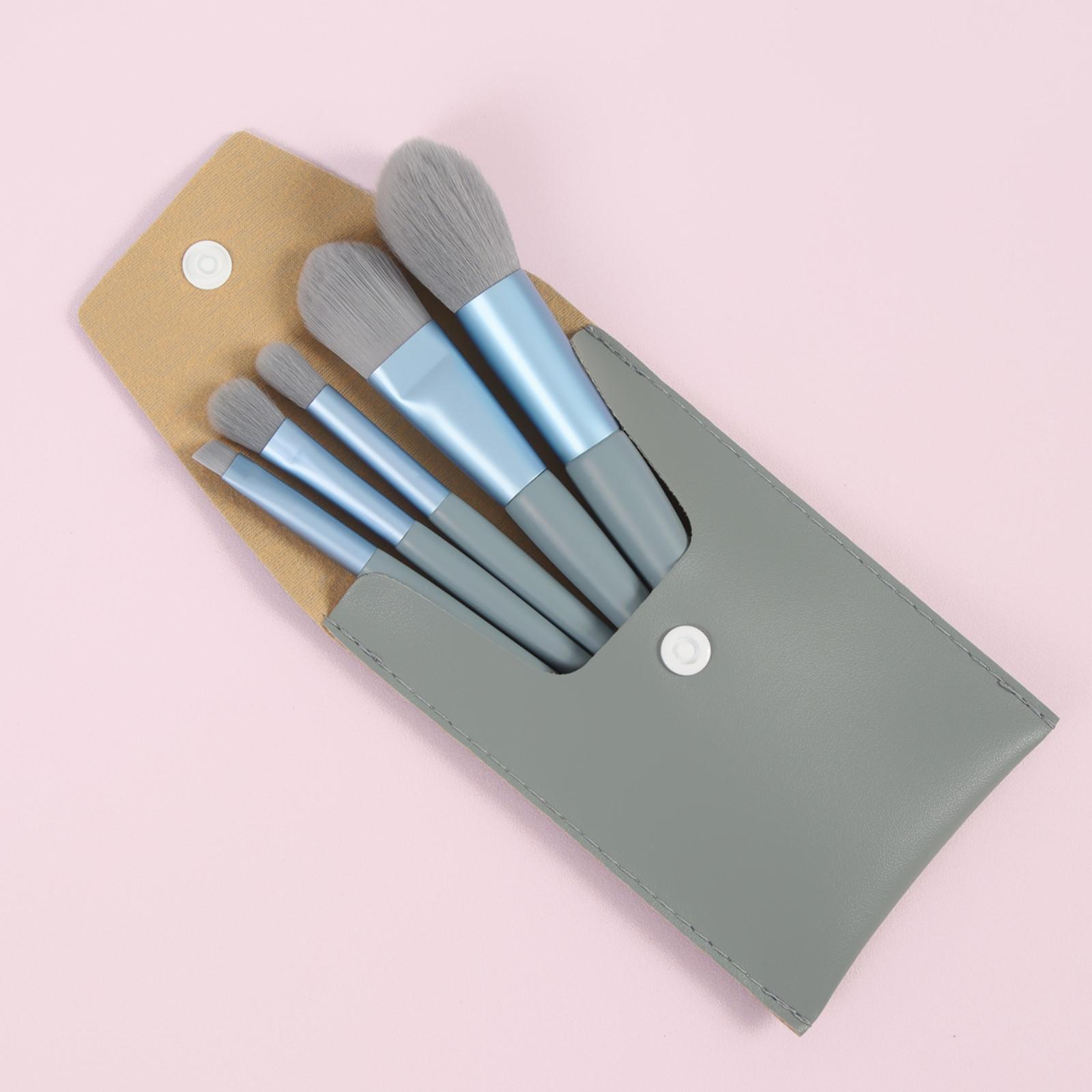 Набор кистей для макияжа «Парфе», 5 предметов, футляр на кнопке, цвет серый/голубой