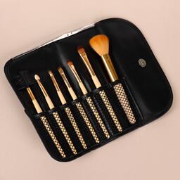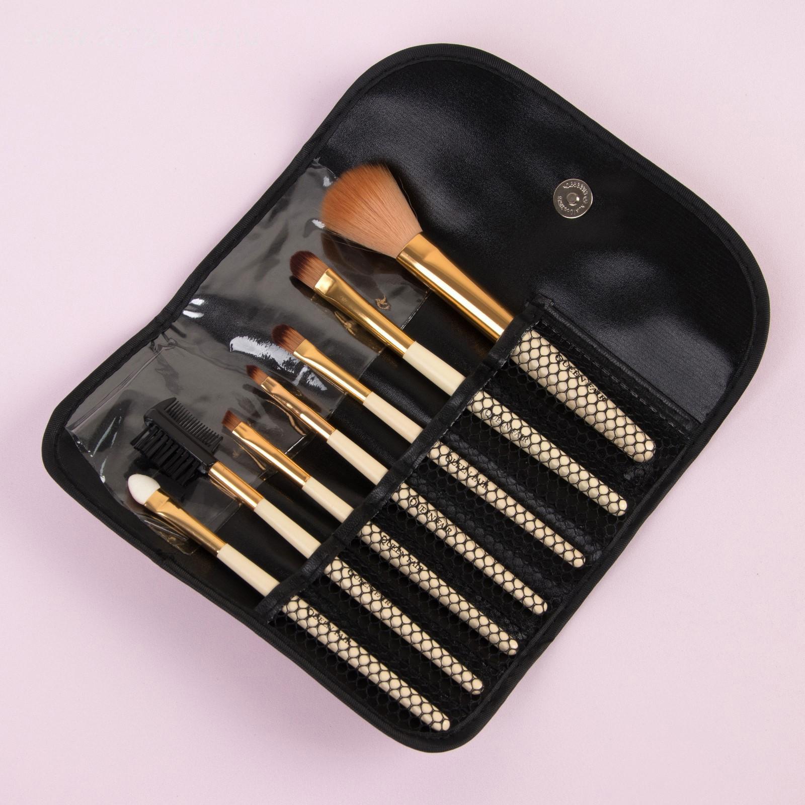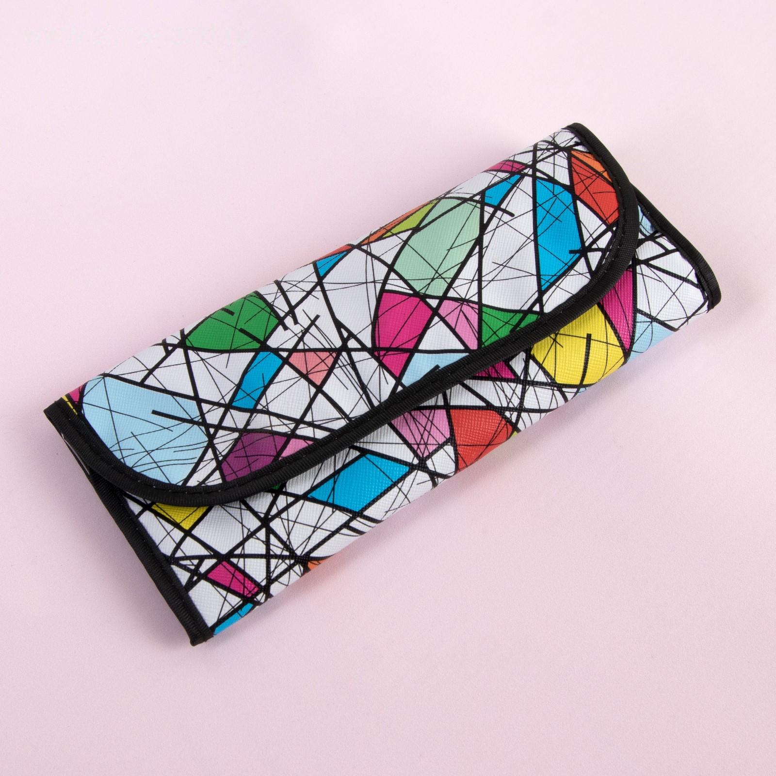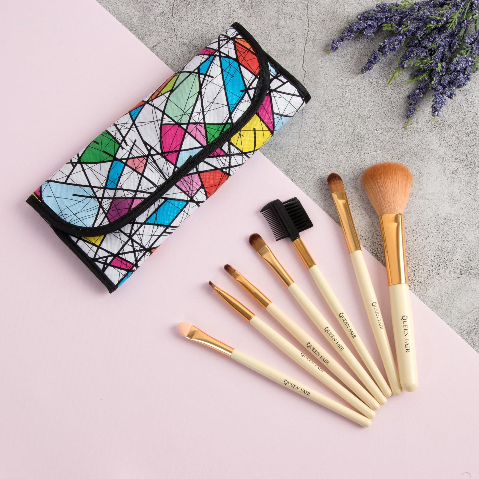 Набор кистей для макияжа «Чёрточки», 7 предметов, чехол на кнопке, разноцветный