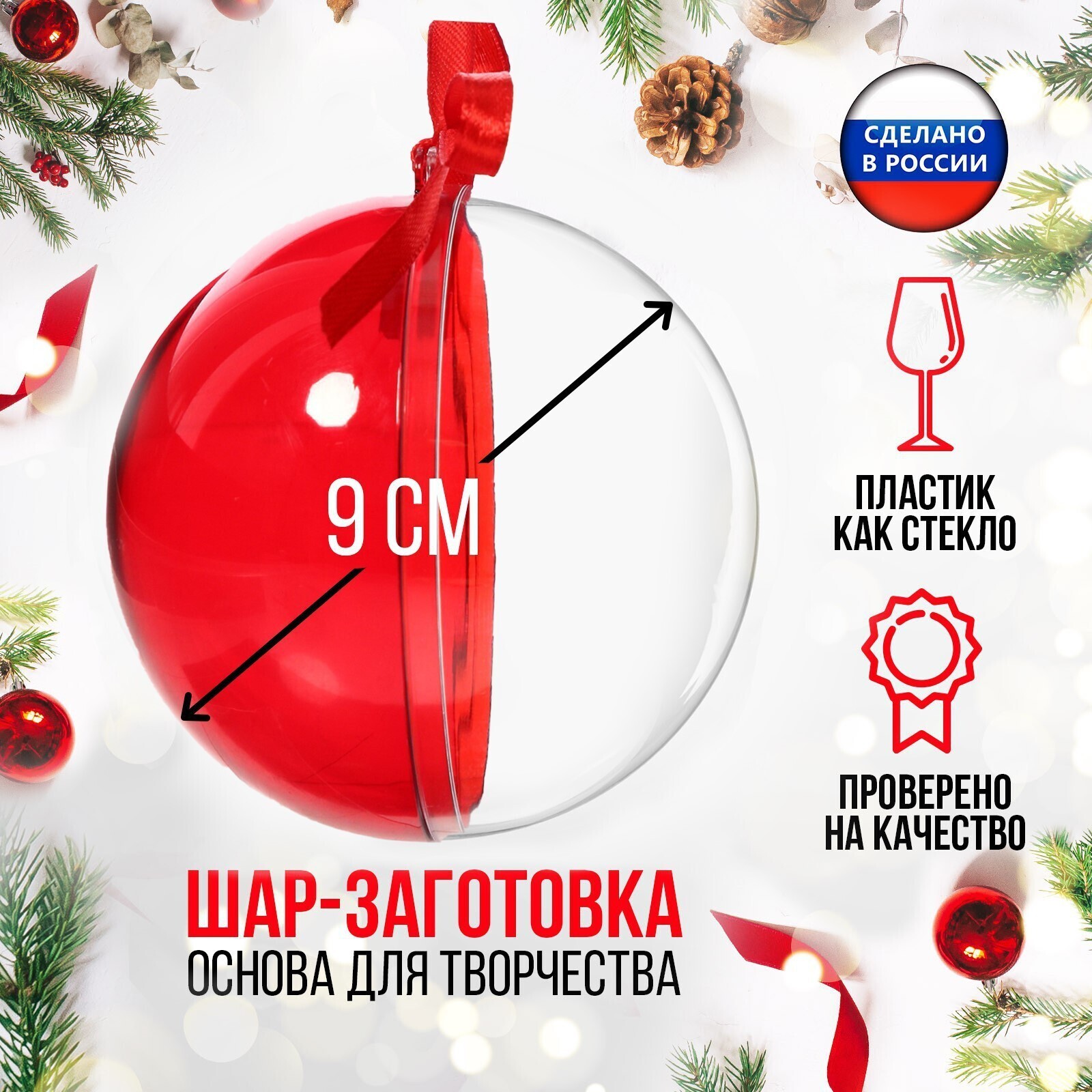 Заготовка - подвеска, раздельные части «Шар», диаметр собранного 9 см, цвет красный