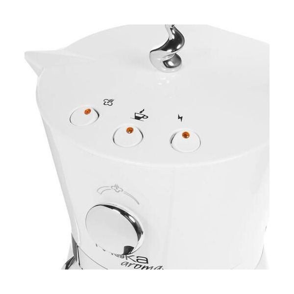 Кофеварка рожковая Ariete 1337/40 Moka Aroma представлена в элегантном металлическом корпусе белого цвета с емкостью на 1000 мл. С ее помощью вы легко приготовите напиток из чалды и молотых сортов кофе. Устройство действует с мощностью 850 Вт, подключаясь к стандартной сети с помощью недлинного кабеля. Прибор Ariete 1337/40 Moka Aroma дополнен удобным индикатором включения и возможностью регулирования порции кипятка. Данная модель позволяет одновременно готовить несколько порций, а также автоматически отключается по окончанию программы. Кофеварка дополнена ручным капучинатором и функцией подачи чистого кипятка.