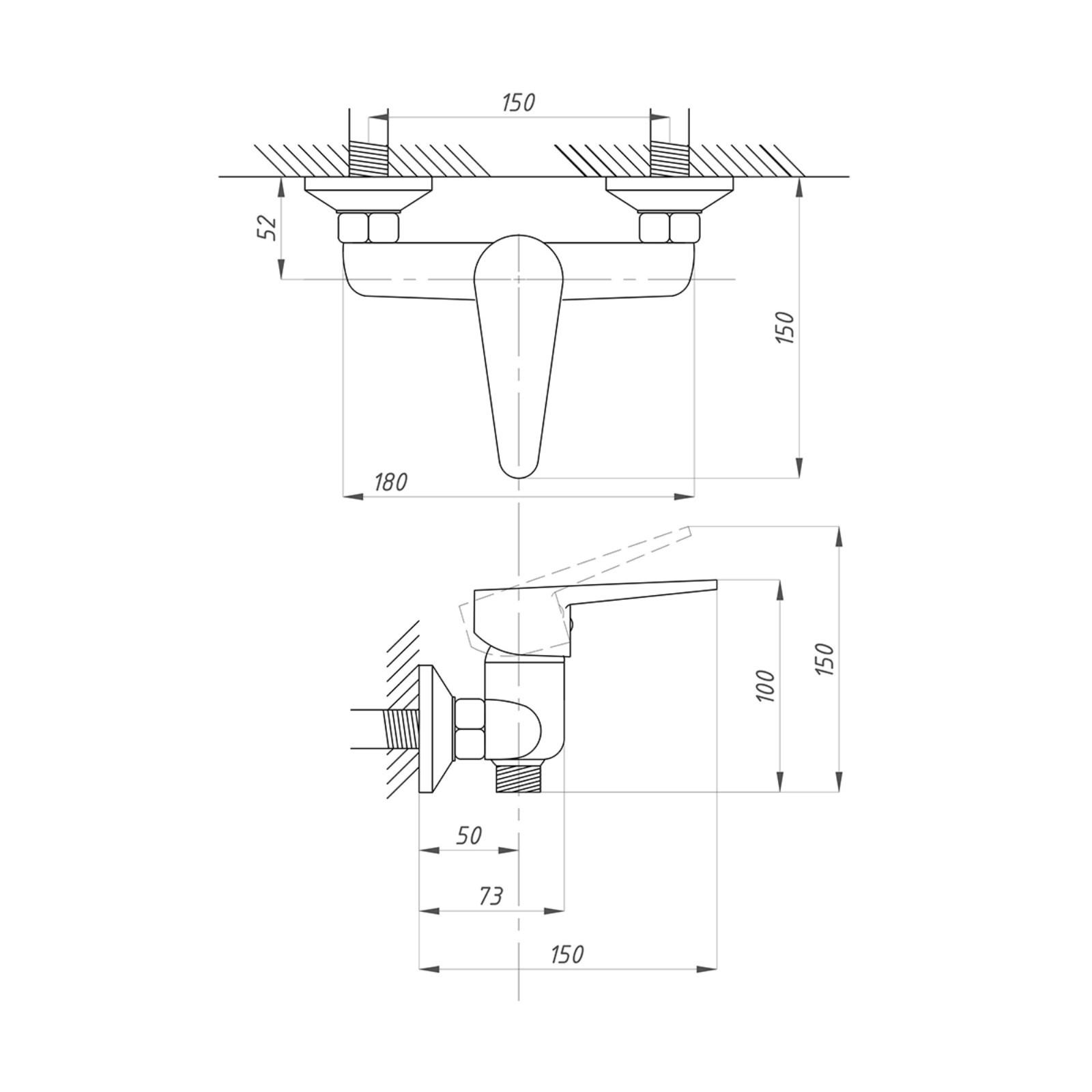 Смеситель для душа "ПСМ-Профсан" PSM-104-4, однорычажный, без излива, лейка, хром