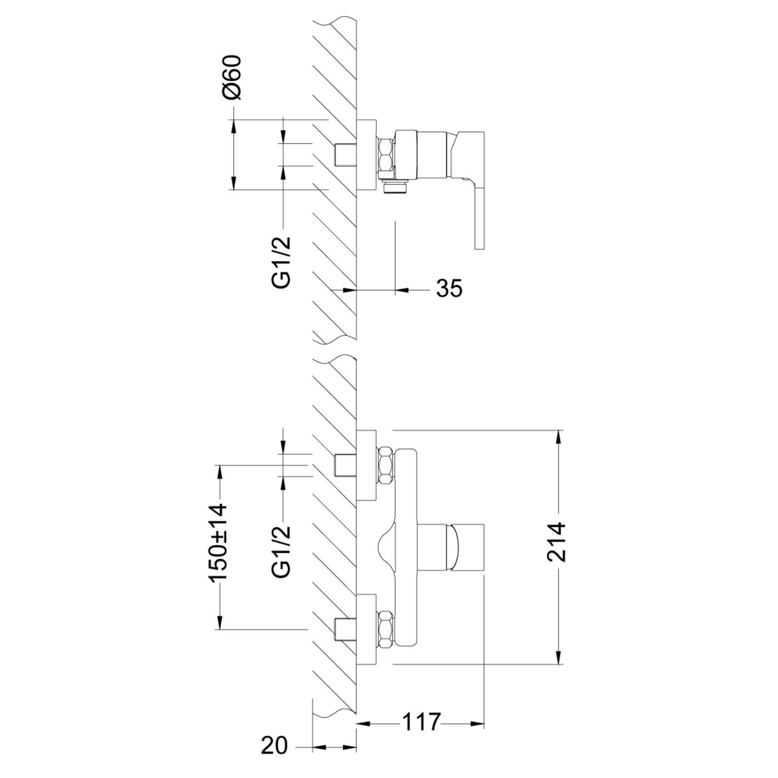 Смеситель для душа Lemark Aura LM0603C, однорычажный, без излива, лейка, хром