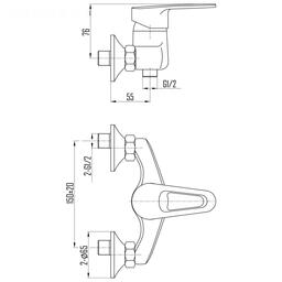 Смеситель для душа DEVIDA ERSA DVL0331-02, однорычажный, картридж 40 мм, хром