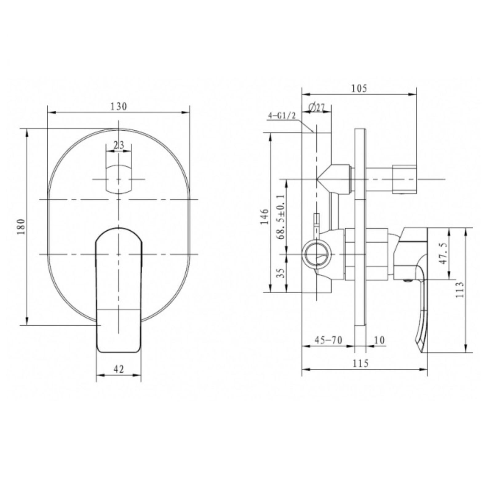 Смеситель для душа KAISER Aurora 67277, скрытый монтаж, хром