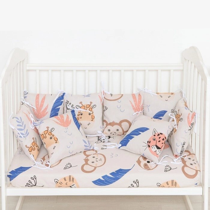 Бортики в кроватку Крошка Я "African friends"35х35 см - 8 шт),100% хлопок