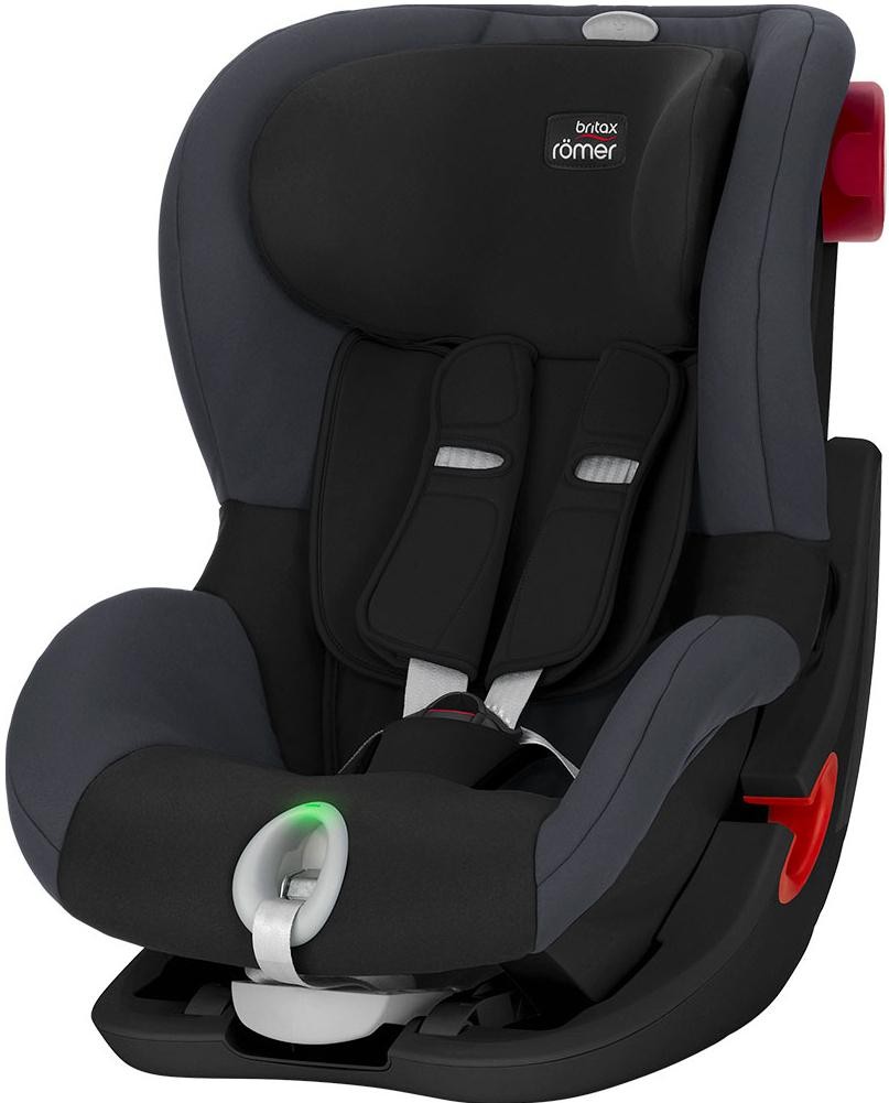 Автокрісло Britax-Romer King II - це оновлена версія King Plus - одного з найбільш популярних автокрісел від Britax. Процес встановлення автокрісла в автомобілі не займе більше 30 секунд, при цьому закріплене крісло буде триматися міцно і надійно. Одним рухом руки спинку можна відрегулювати до напівлежачого положення, завдяки чому малюк може комфортно виспатися під час далекої поїздки. Посадочне місце в King II виконано максимально ергономічно, воно має коконоподібную форму і закриті бічні частини для захисту ніг і тазостегнової частини. З King II діткам вже з 9-ти місяців буде так само комфортно як і в автокріслах групи 0 +.