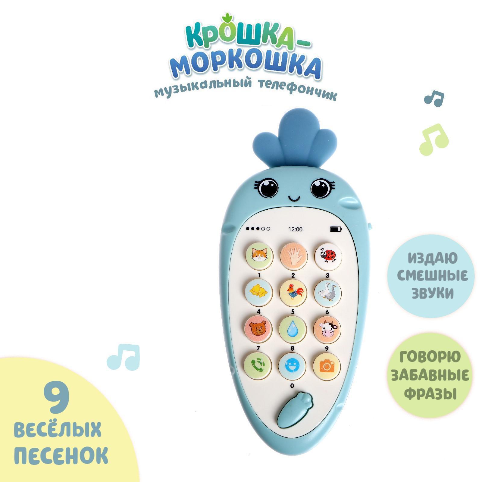Музыкальный телефон «Крошка-Моркошка», свет, звук, цвет синий, в ПАКЕТЕ