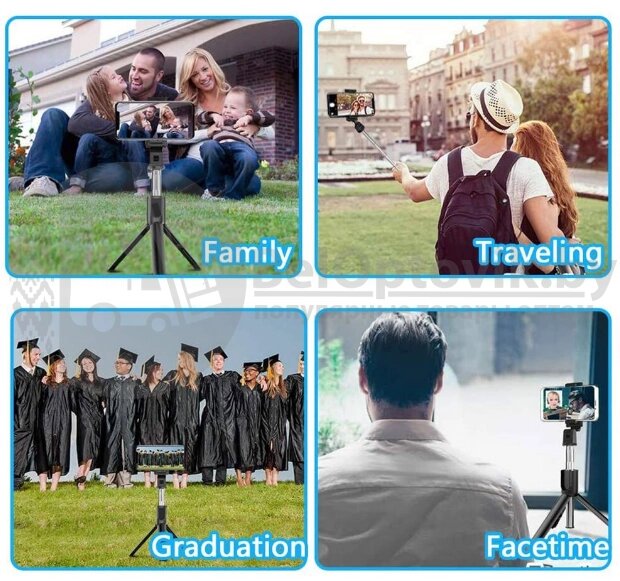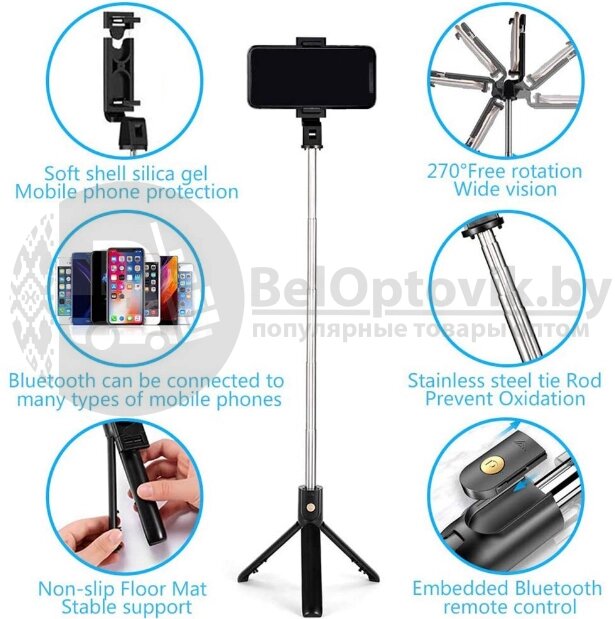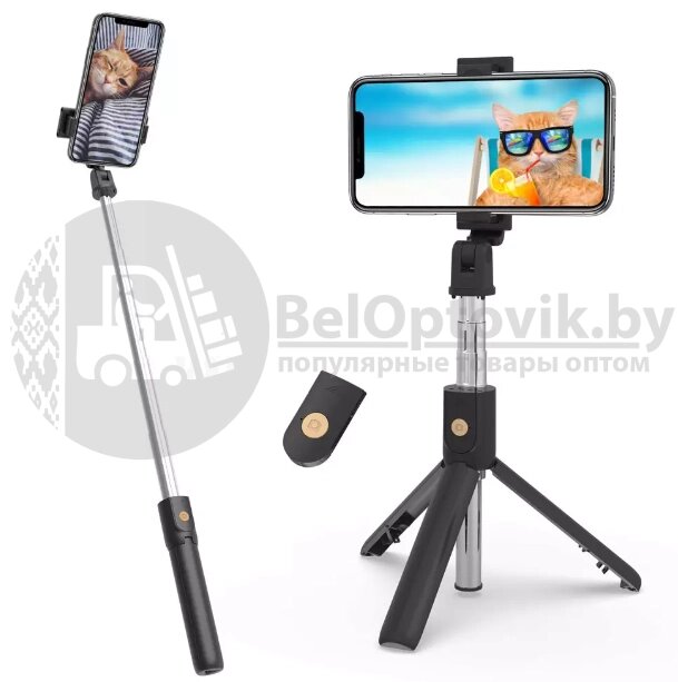 Беспроводной монопод для селфи со встроенной треногой Трипод Bluetooth пульт (19-56см) К07