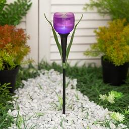 Садовый светильник Uniel на солнечной батарее «Лиловый тюльпан», 5 × 30.5 × 5 см, свечение белое