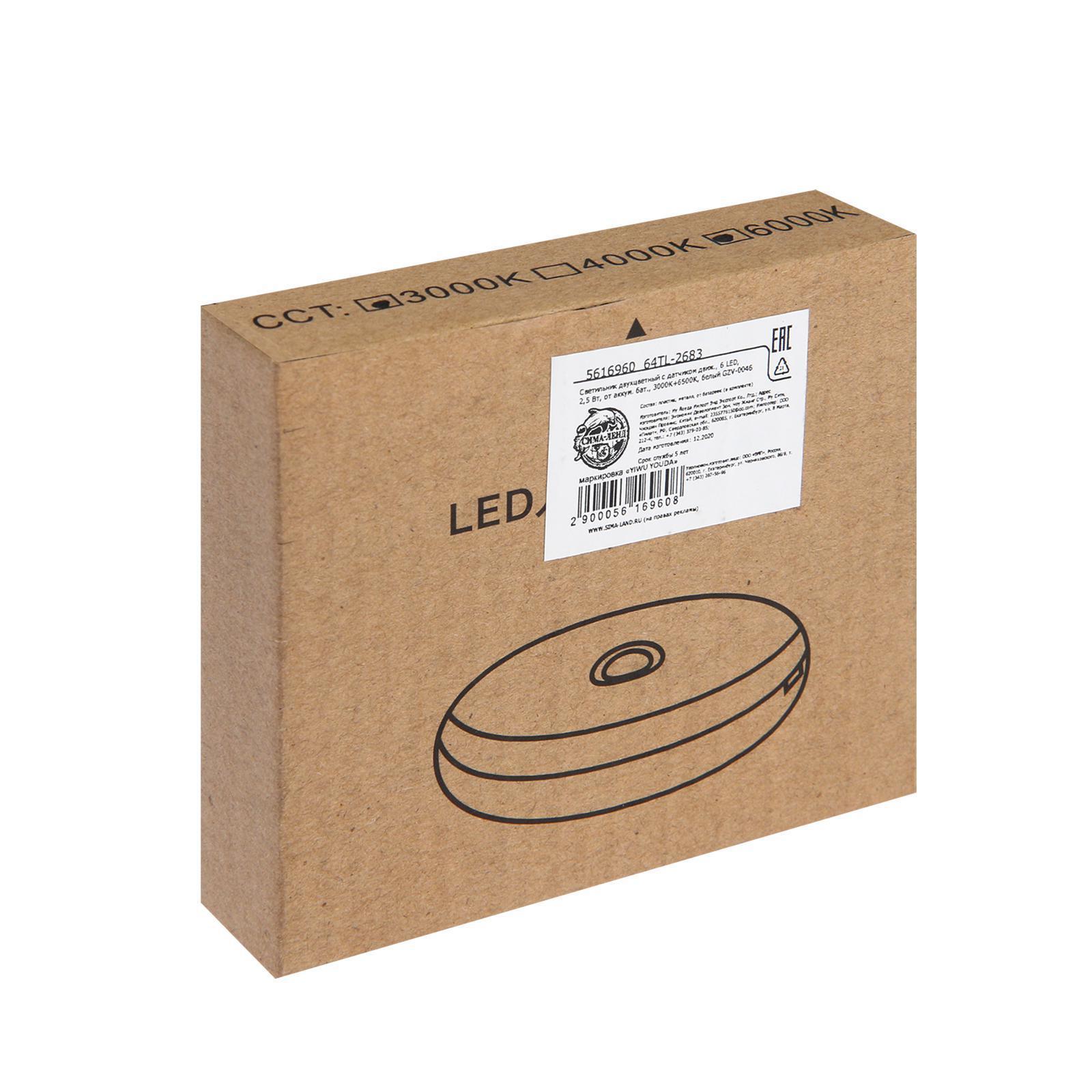 Светильник двухцветный с датчиком движ., 6 LED, 2,5 Вт, от аккум. бат., 3000К+6000К, белый