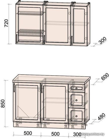 - Высота нижних шкафов 85 см