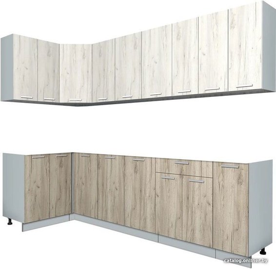 - Оттенок верхних фасадов дуб белый