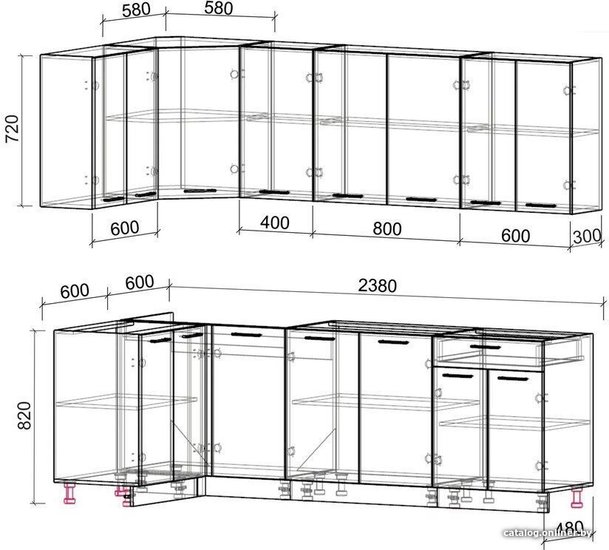 - Высота нижних шкафов 82 см