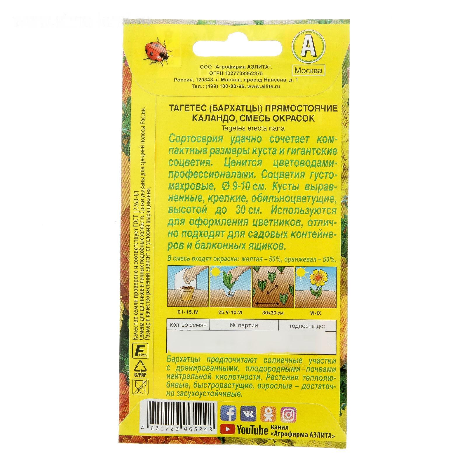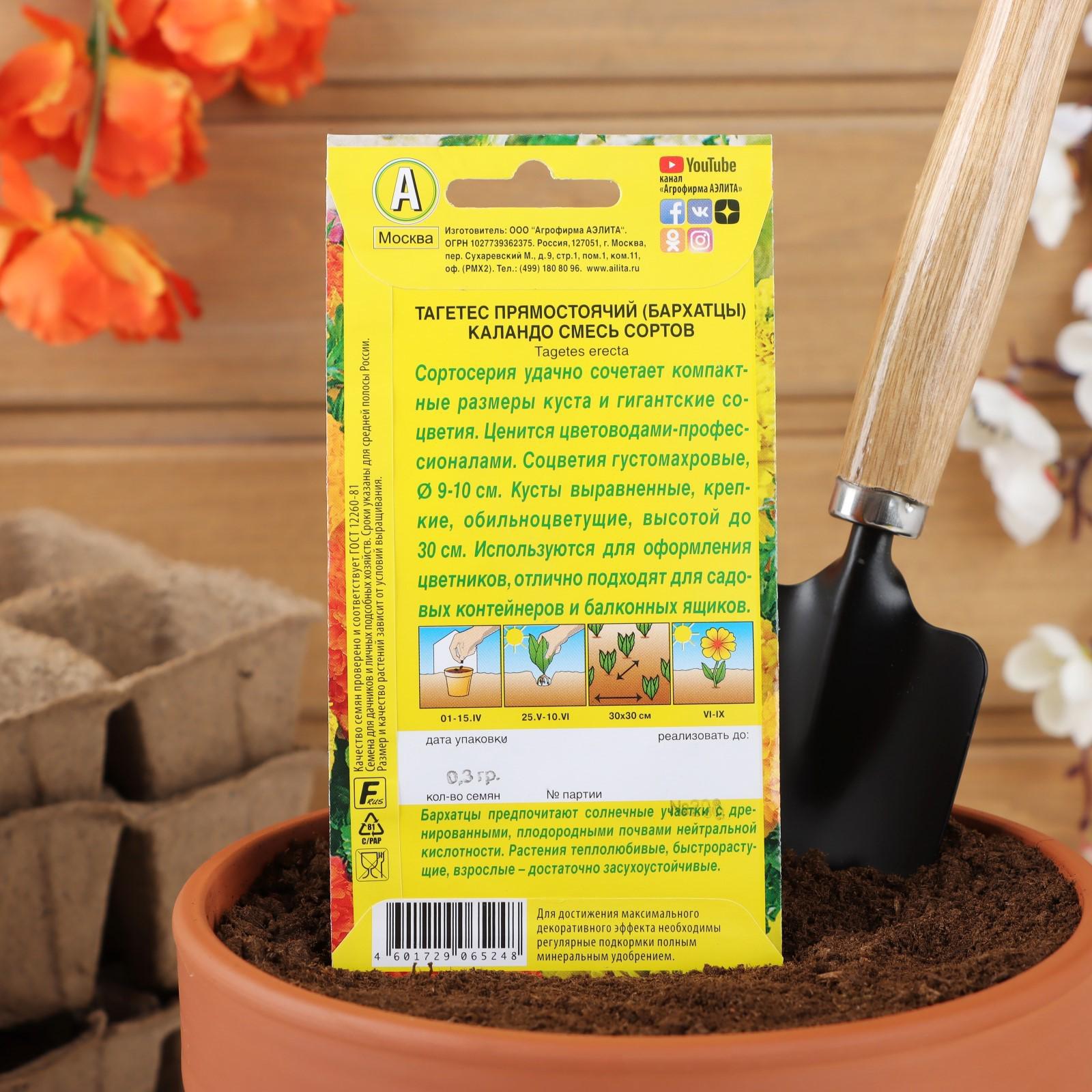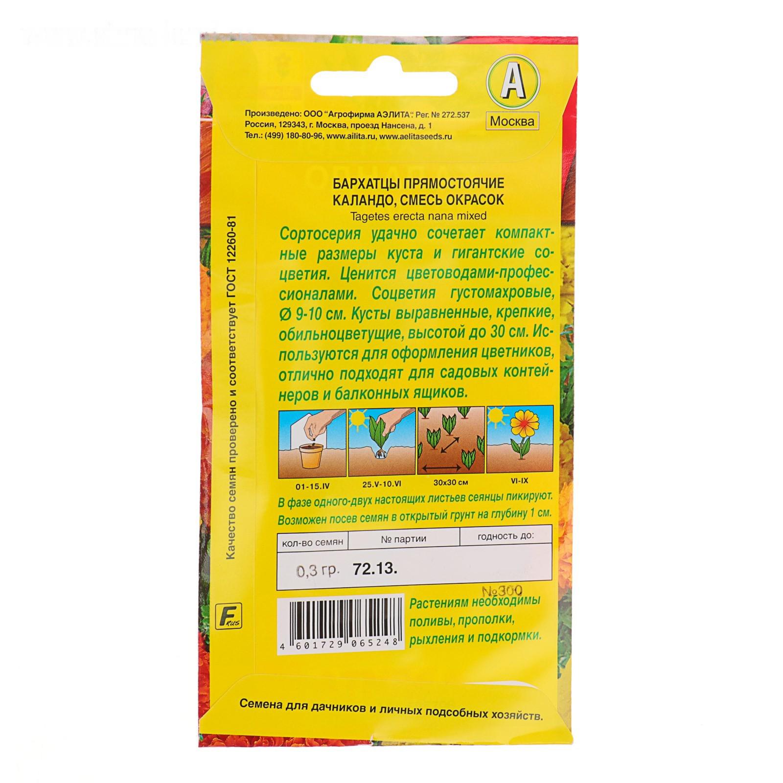 Семена цветов Бархатцы "Каландо", смесь окрасок, О, 0,3 г