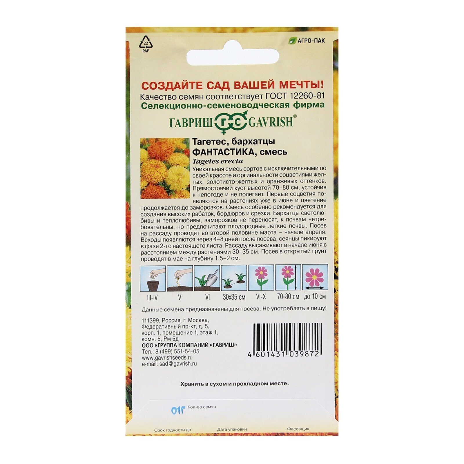 Семена цветов Бархатцы прямостоячие "Фантастика", смесь (Тагетес), О, 0,1 г