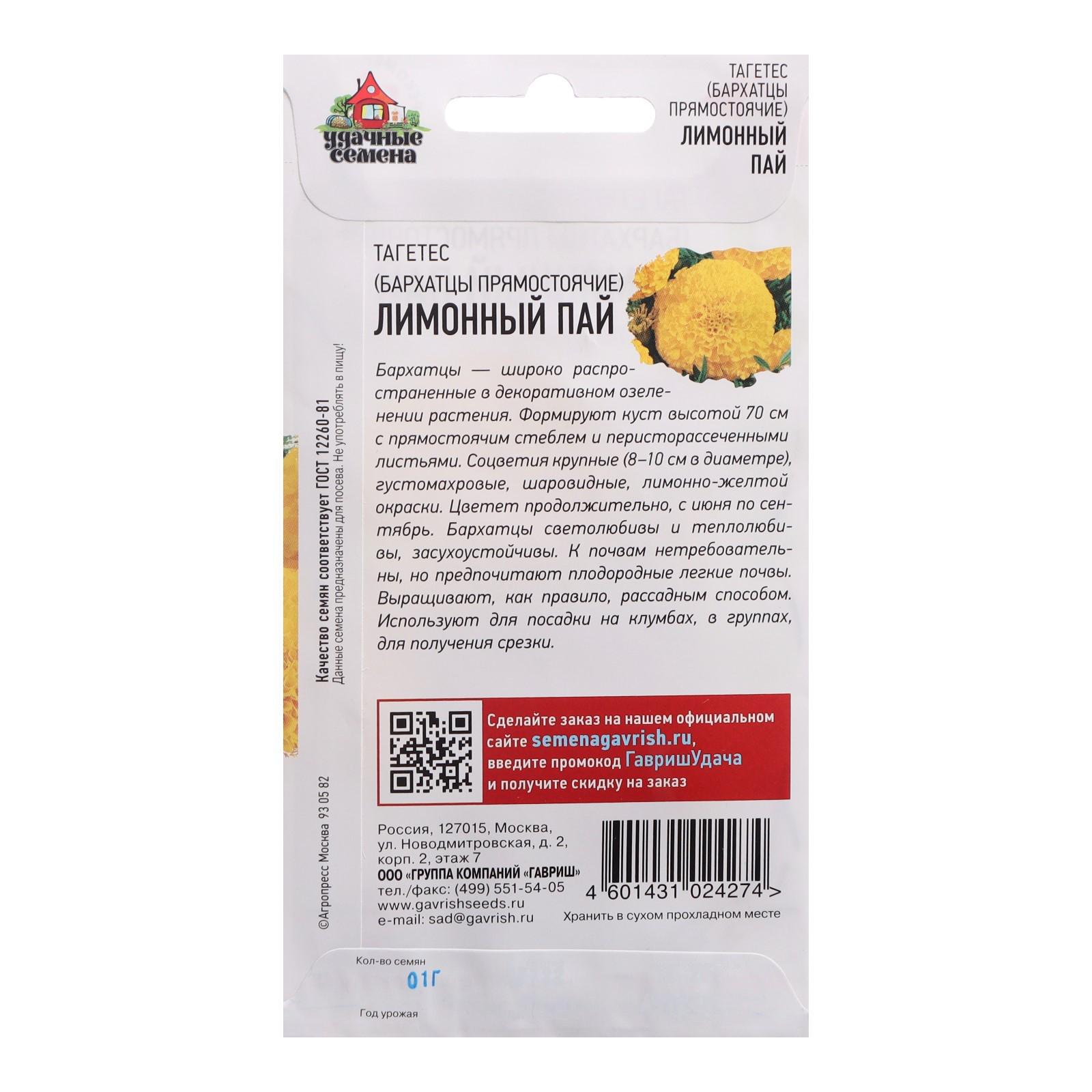 Семена Бархатцы прямые (Тагетес) "Лимонный пай", 0,1 г
