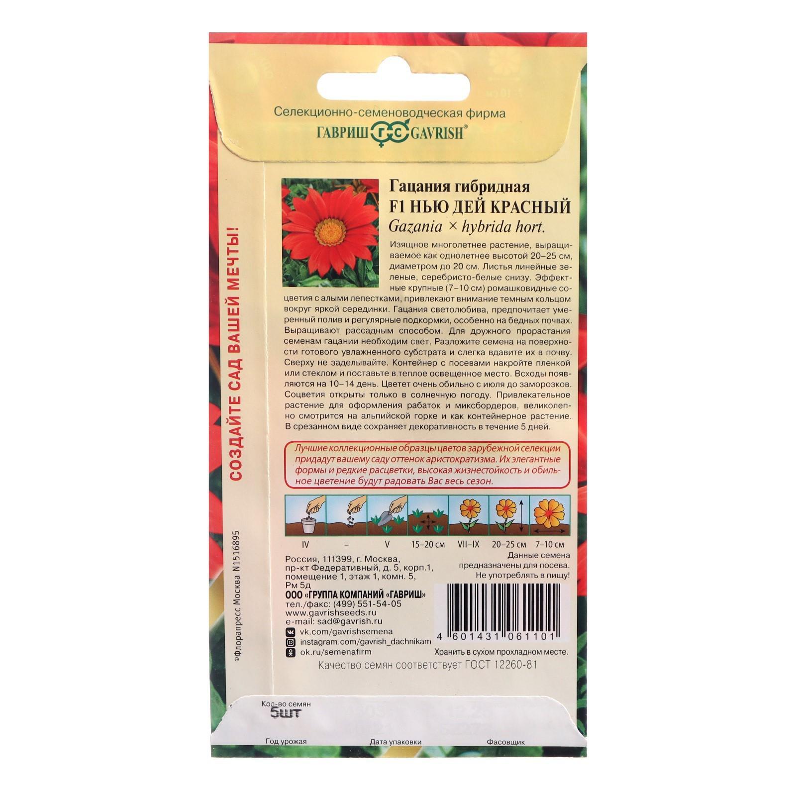 Семена цветов Гацания "Нью Дей Красный F1", 4 шт