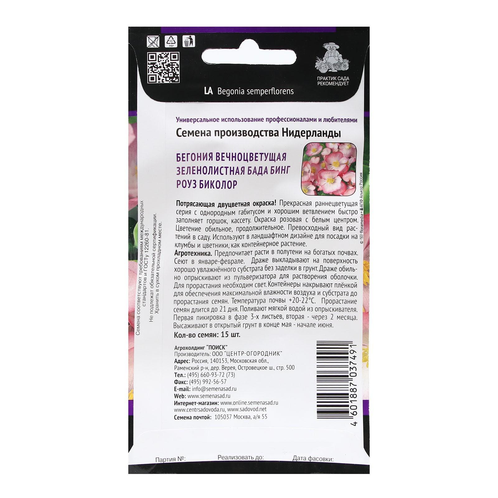 Семена цветов Бегония вечноцветущая зеленолистная "Бада Бинг Роуз Биколор" 15 шт