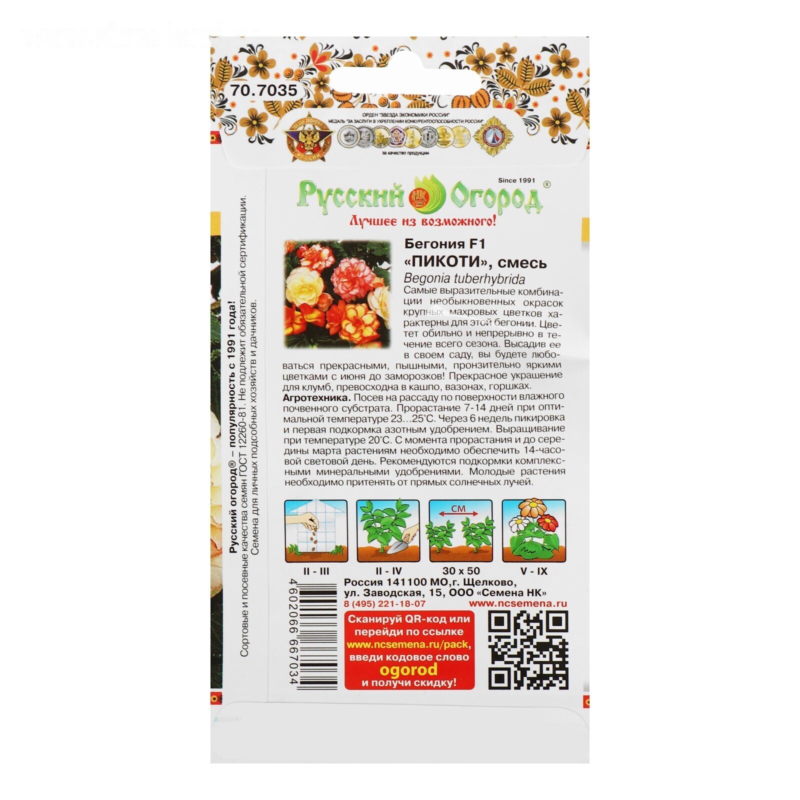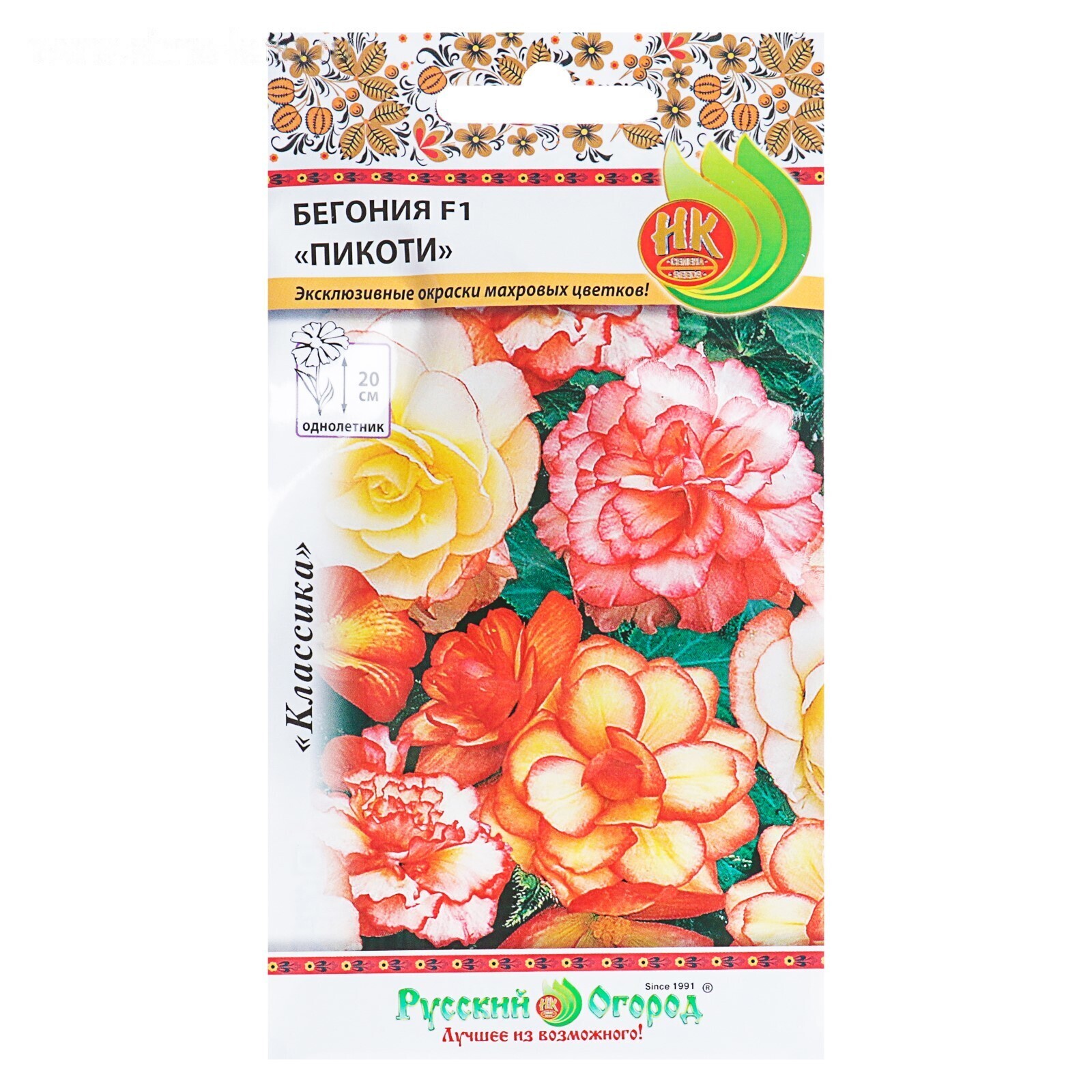 Семена цветов Бегония клубневая "Пикоти" F1 смесь, серия Русский огород, О, 5 шт