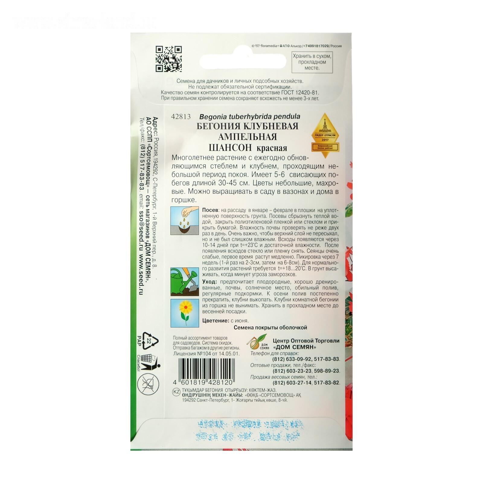 Семена цветов Бегония клубневая, ампельная, махровая "Шансон", красная