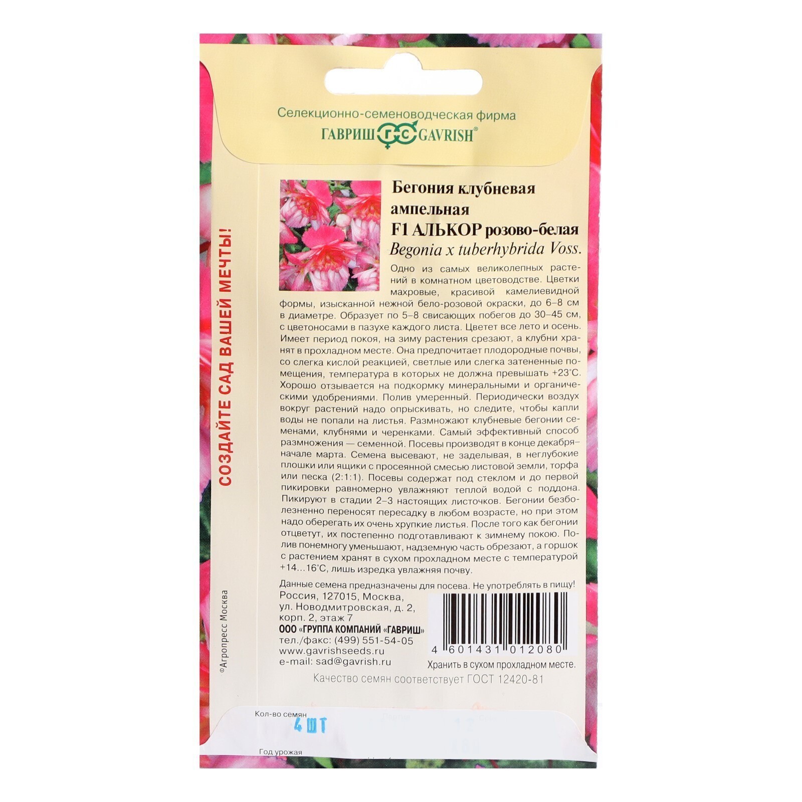 Семена цветов Бегония ампельная "Алькор F1", клубневая, гранулы, пробирка, 4 шт