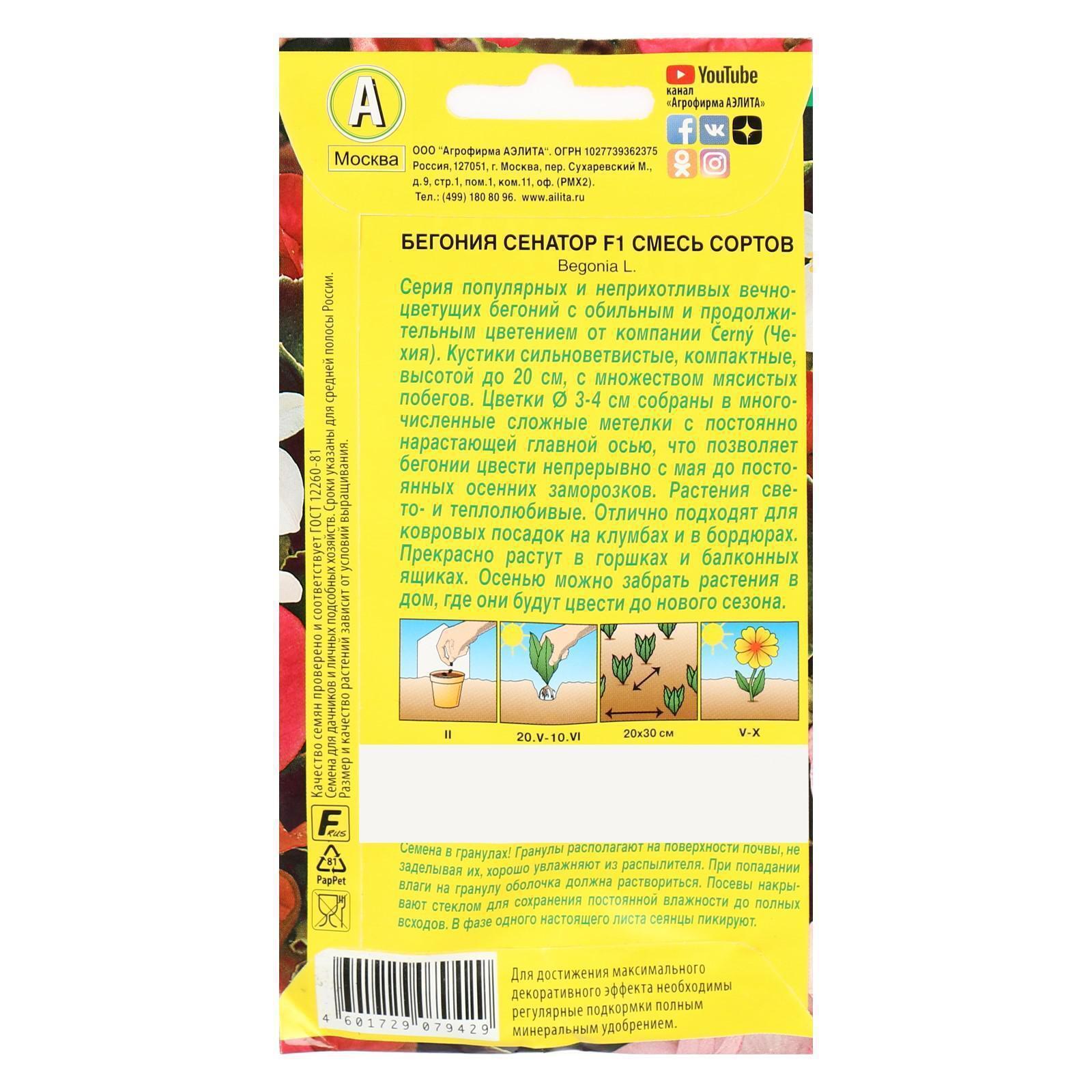 Семена цветов Бегония вечноцветущая "Сенатор F1", смесь, О, 10 шт