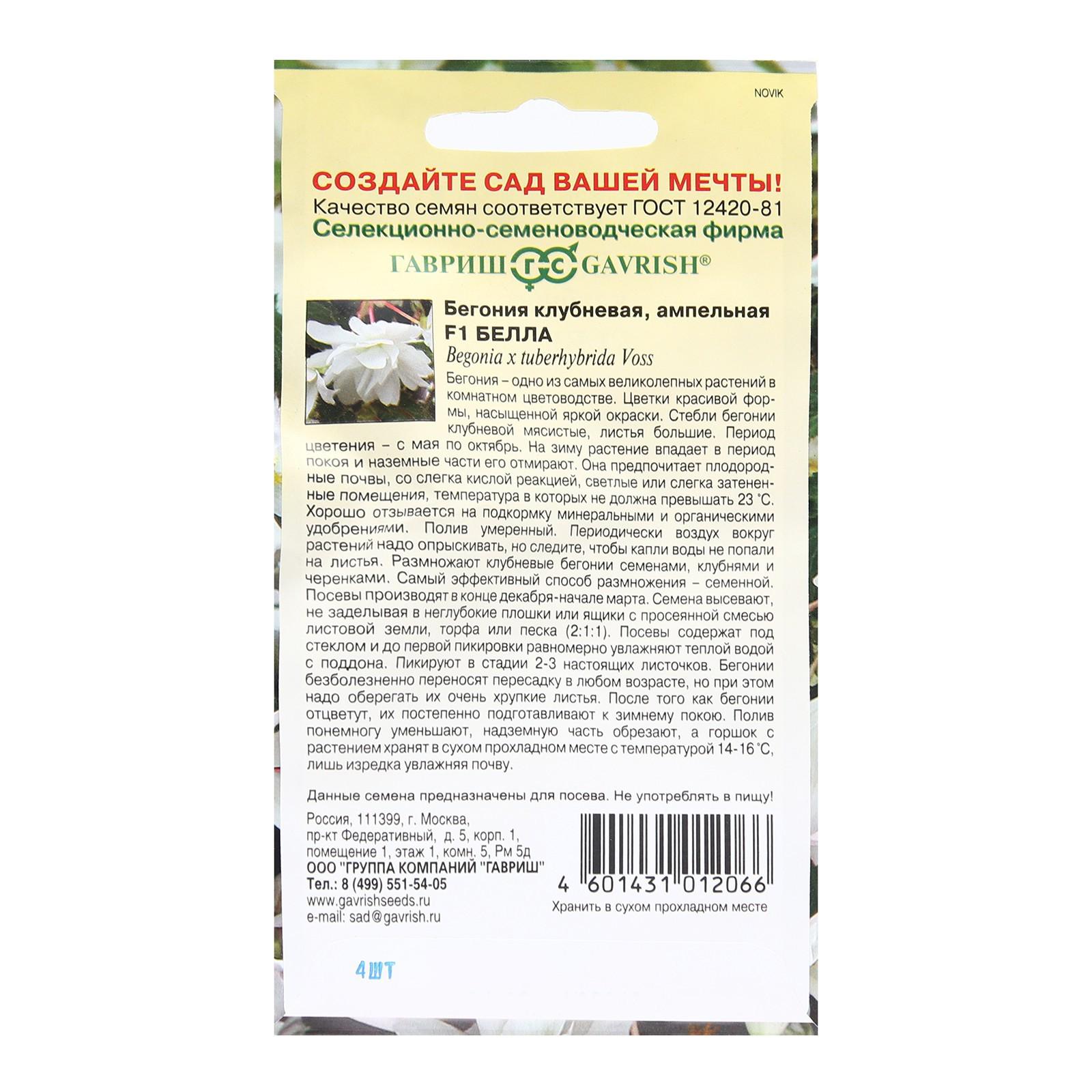 Семена цветов Бегония "Белла", F1, клубневая, гранулы, 4 шт