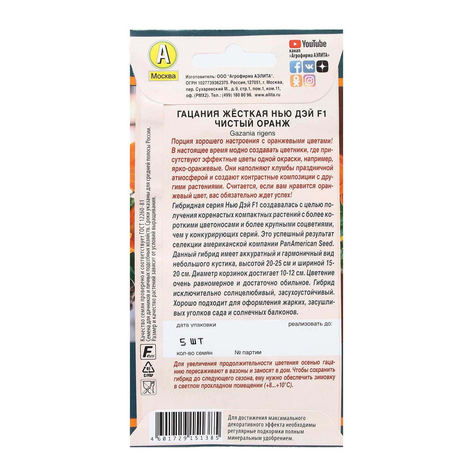 Семена Цветов Гацания Нью Дэй F1 чистый оранж, 5 шт
