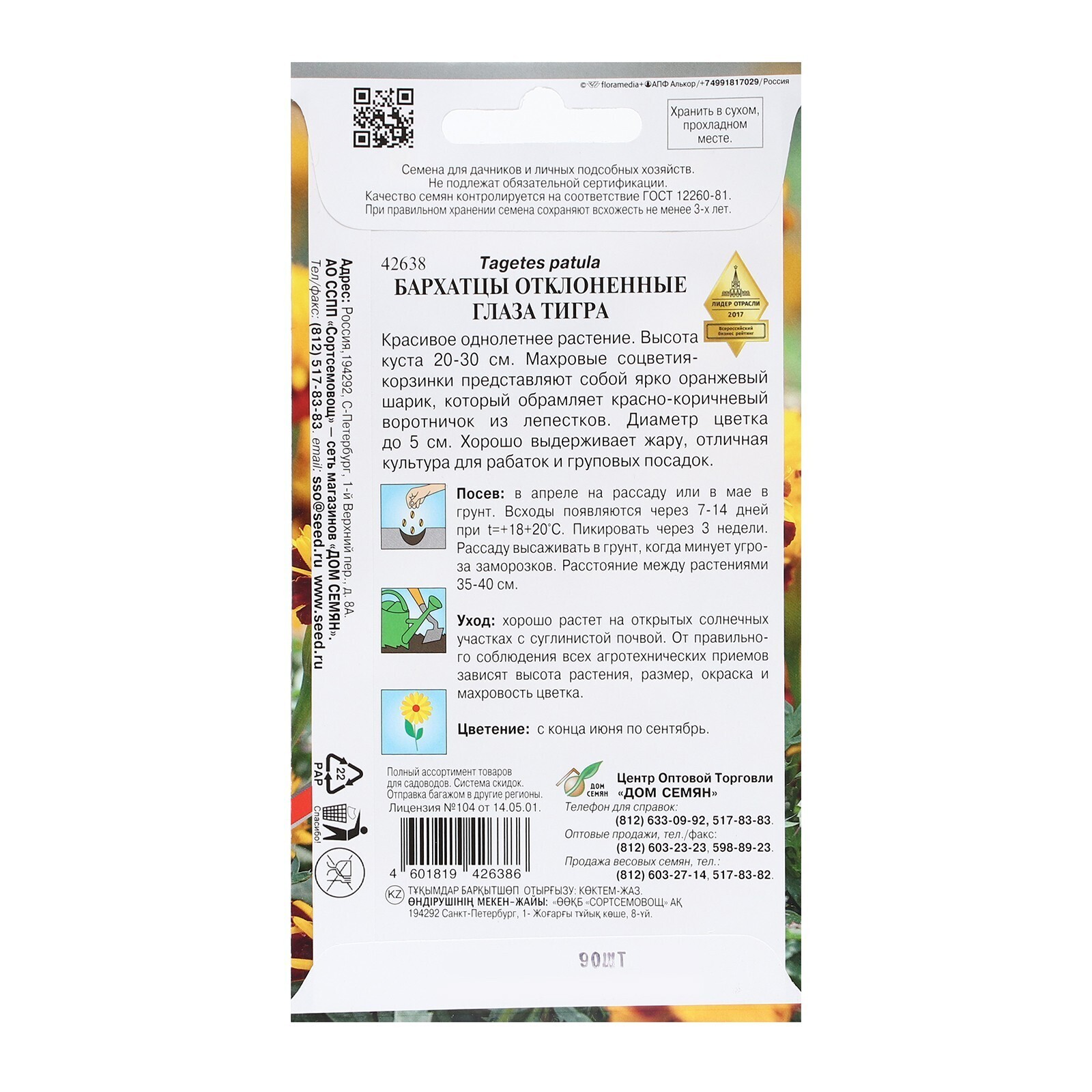 Семена Бархатцы "Тагетес отклонённый", 15 шт