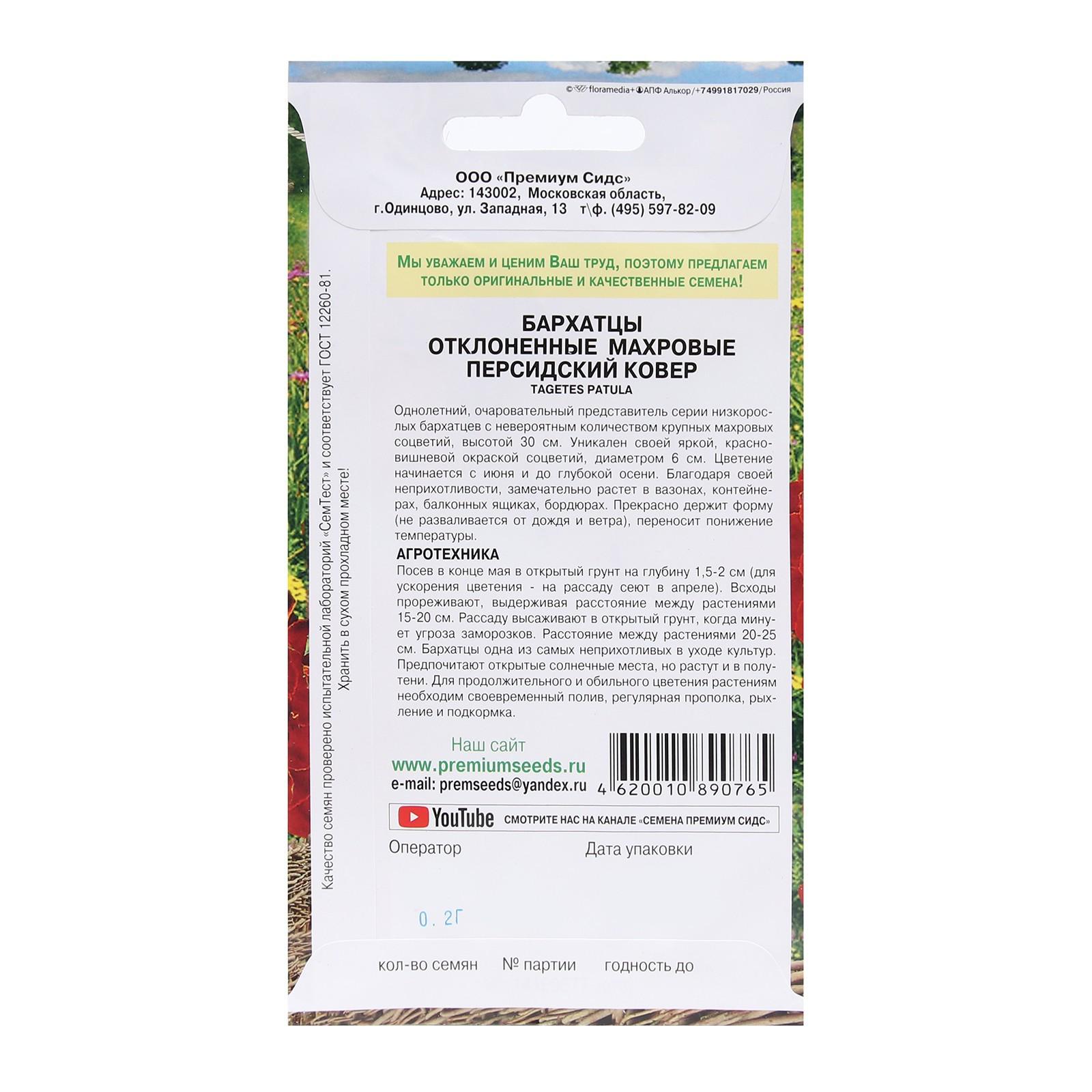 Семена Цветов Бархатцы махровые отклоненные "Персидский ковёр", 0,2
