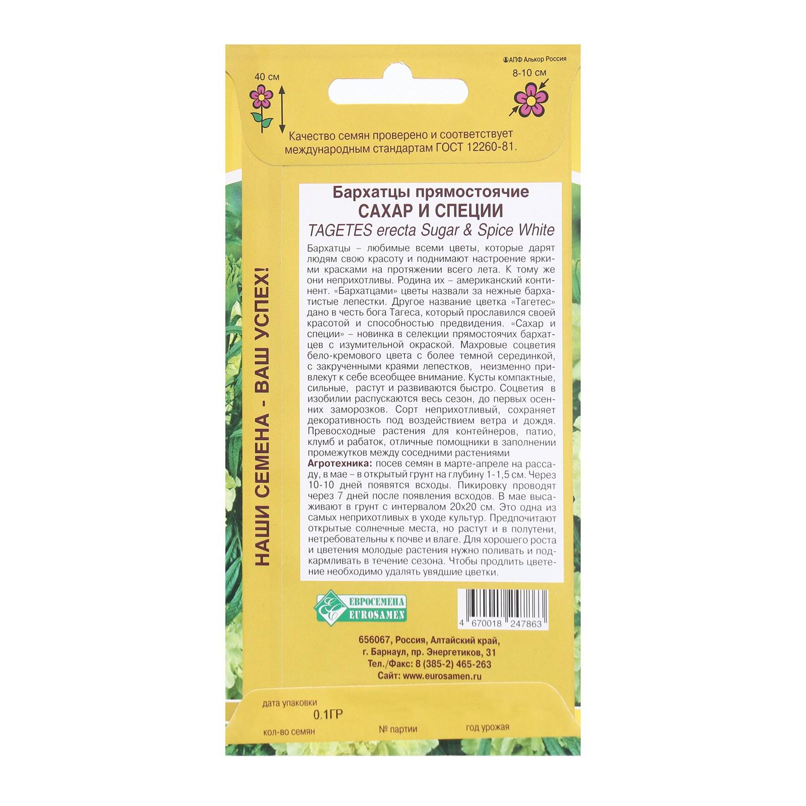 Семена Цветов Бархатцы прямостоячие Сахар и Специи, 0,1 г