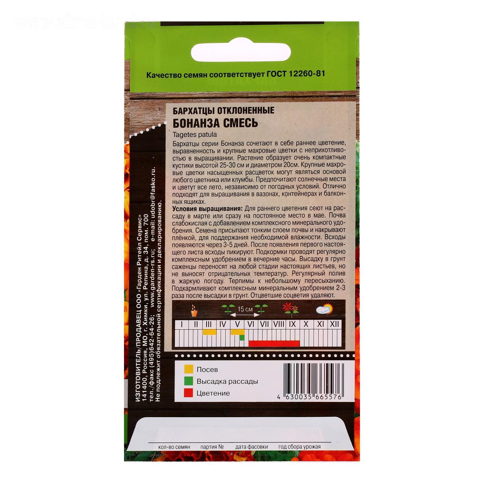 Семена цветов Бархатцы отклоненные "Бонанза", смесь 10 шт
