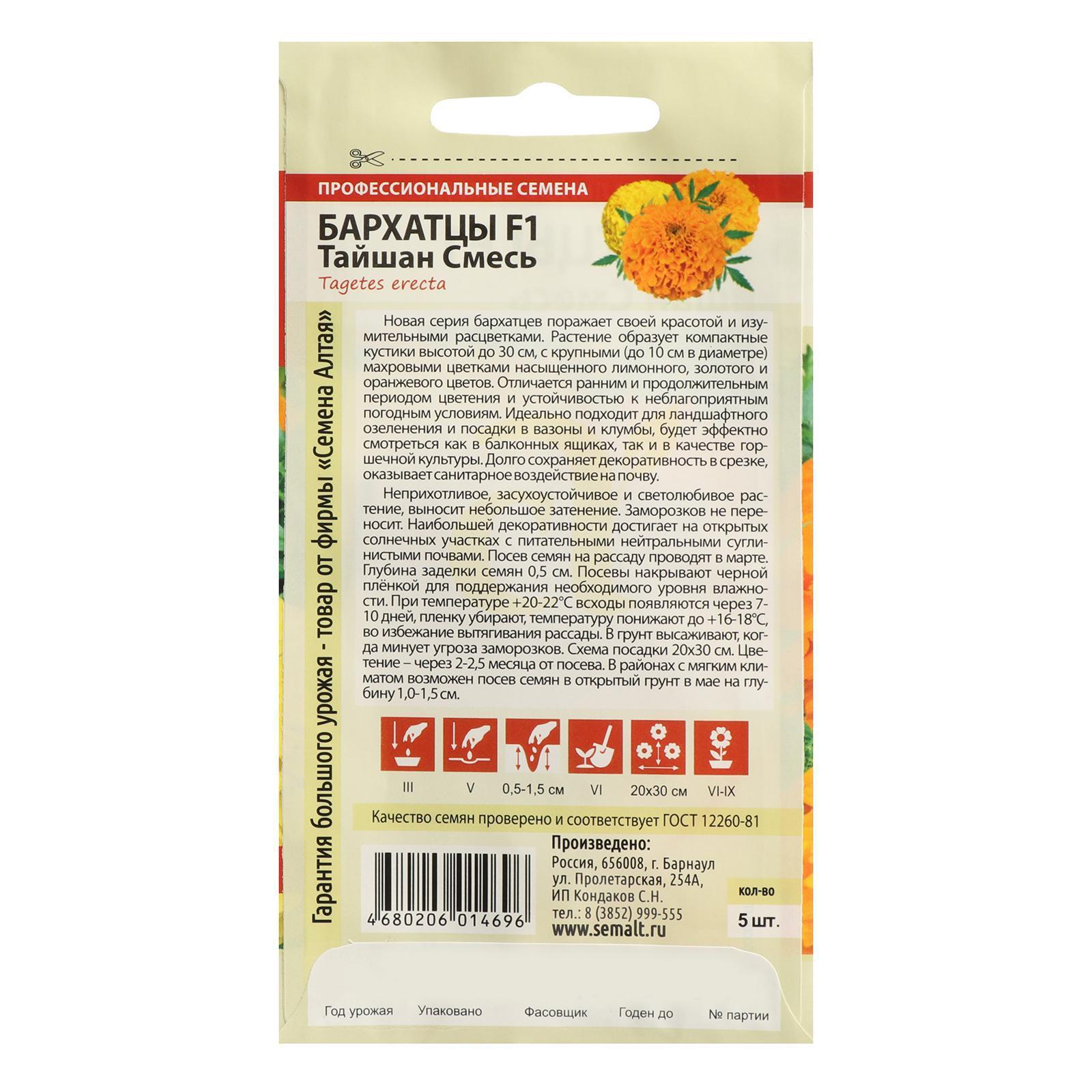 Семена цветов Бархатцы "Тайшан", смесь, Сем. Алт, ц/п, 5 шт