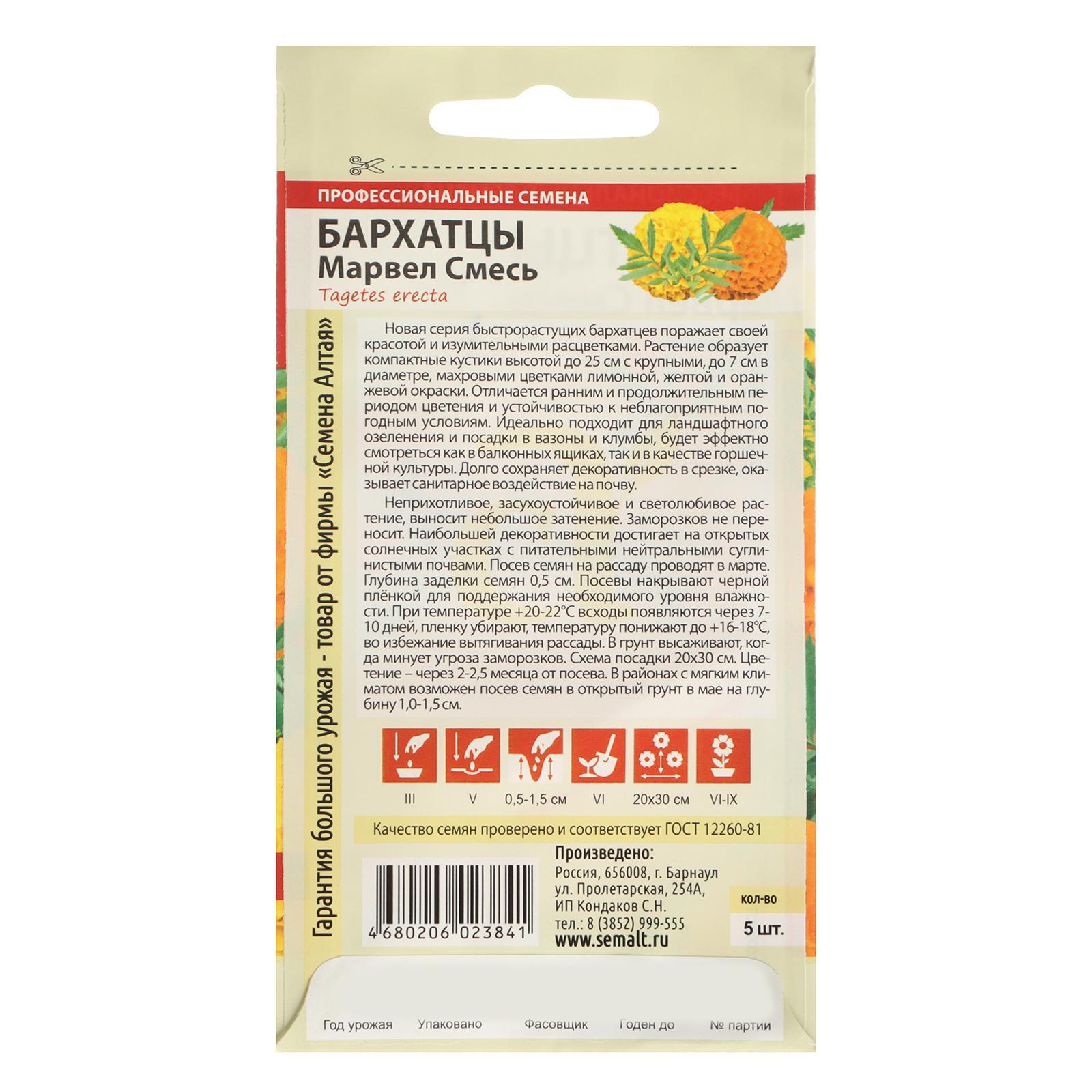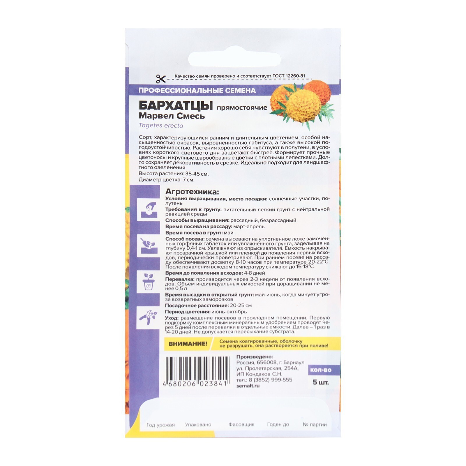 Семена цветов Бархатцы "Марвел", смесь, Сем. Алт, ц/п, 5 шт
