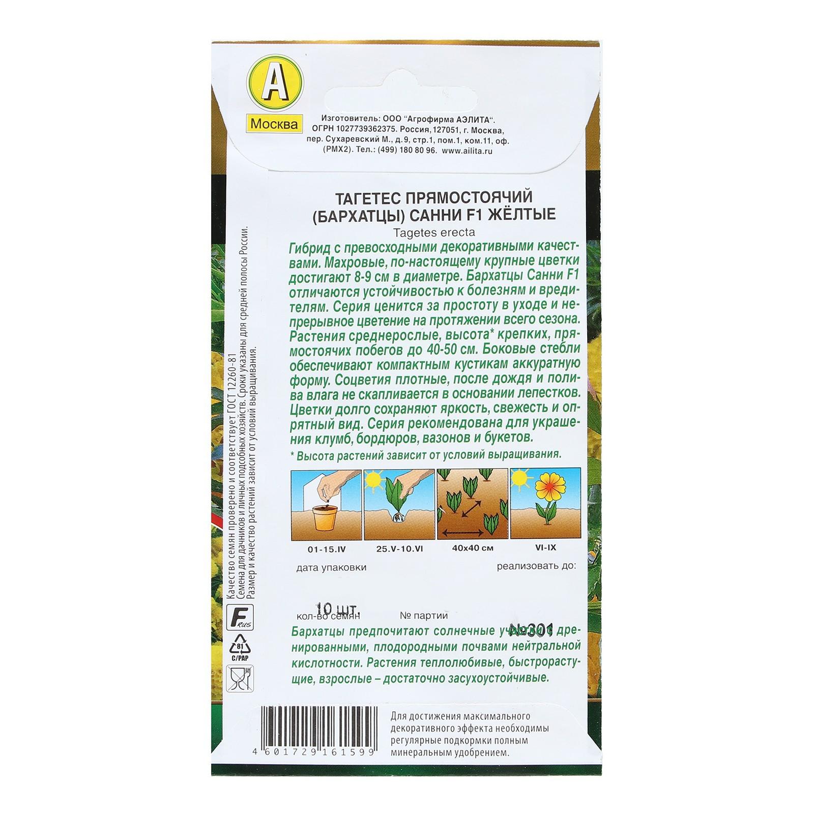 Семена Цветов Бархатцы Санни F1 желтые прямостоячие, 10 шт