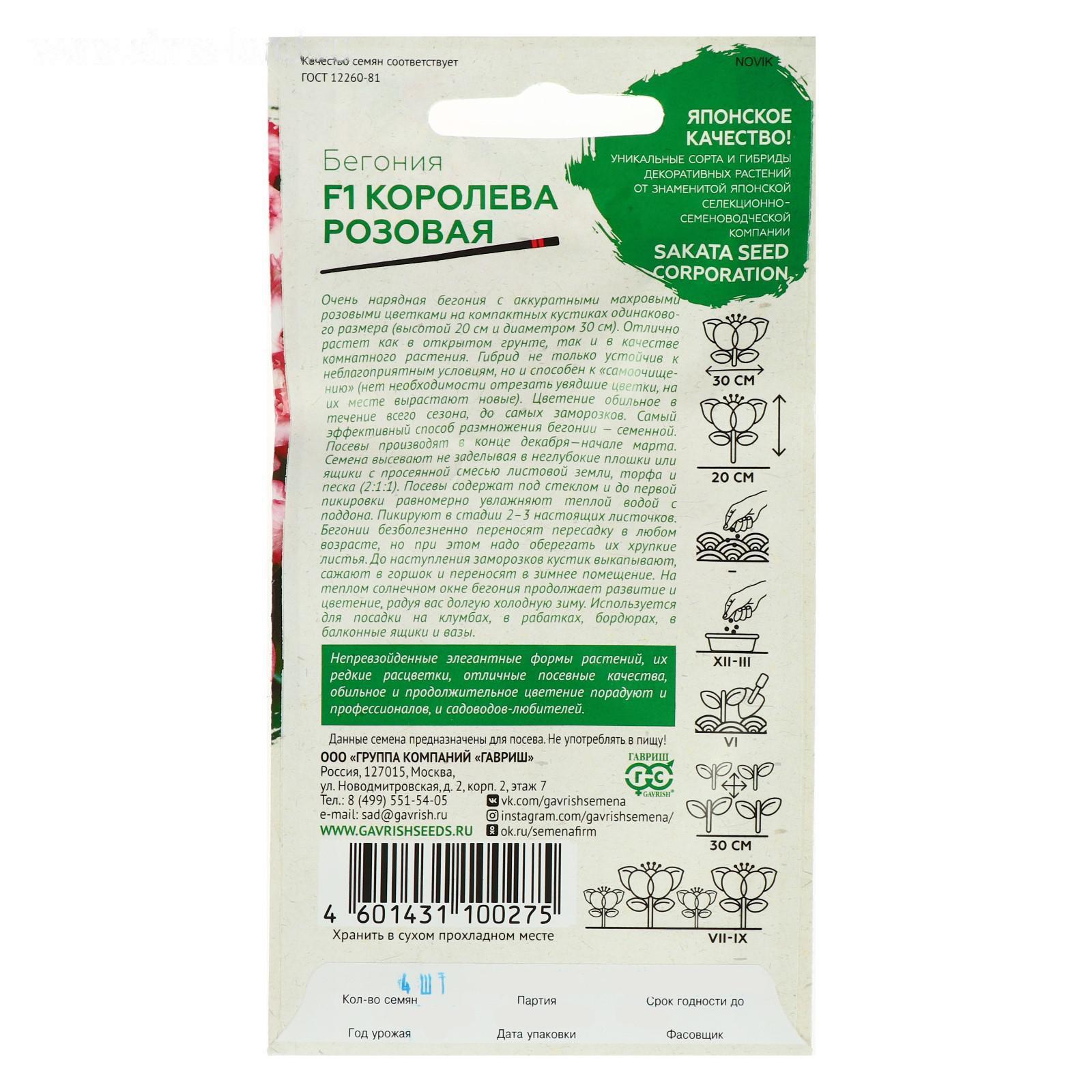 Семена цветов Бегония "Королева розовая", F1, вечноцветущая, серия Саката, 4 шт