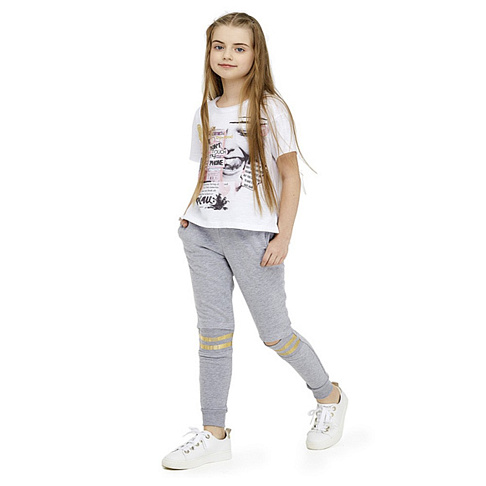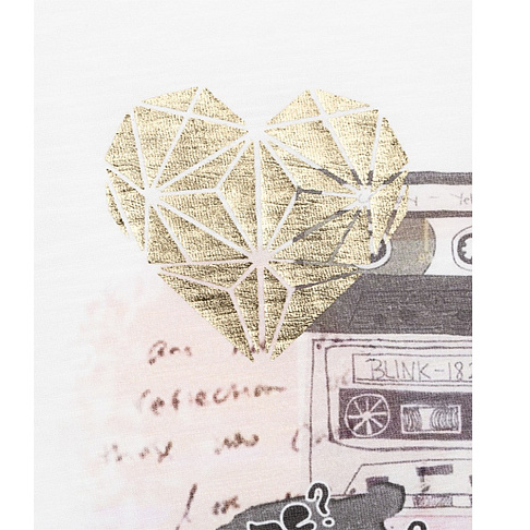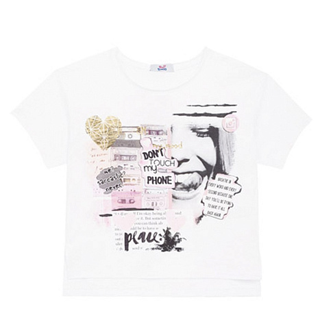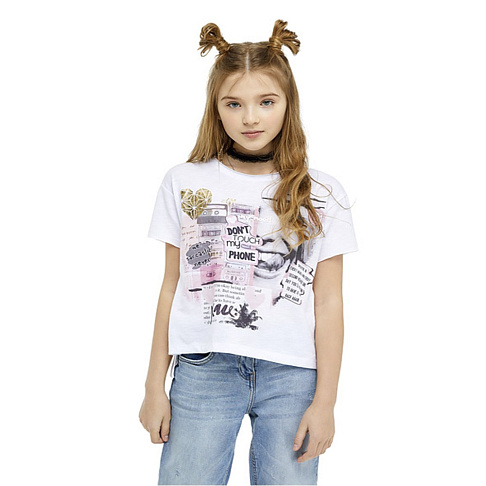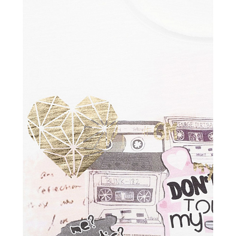 Футболка с оригинальным принтом в стиле фотоколлажа, сделает образ ярким и позволит девочке почувствовать свою уникальность! Нежные оттенки и золотые элементы придают дизайну эффектность. Мягкая ткань подарит ощущение непринуждённости и комфорта.