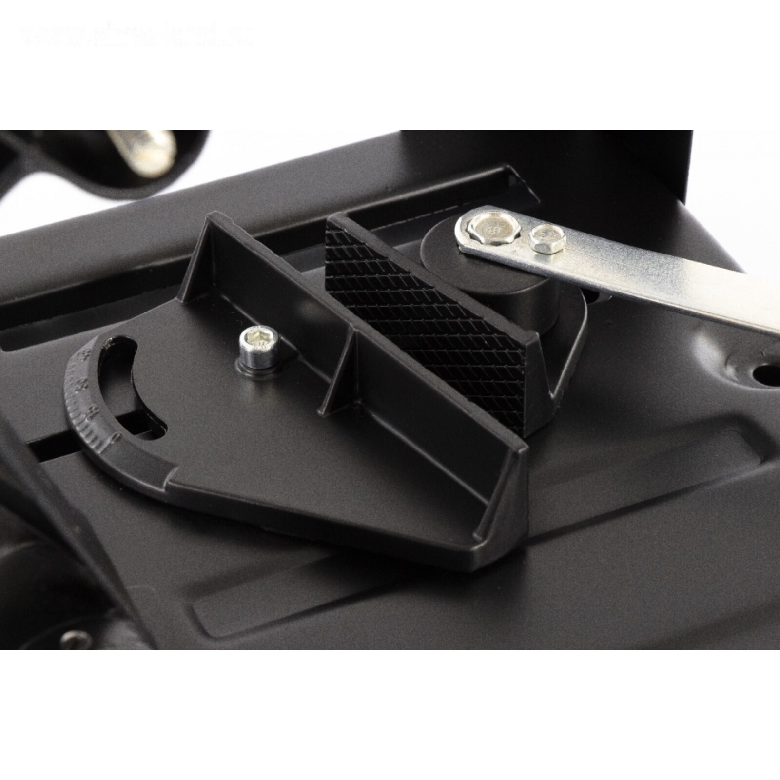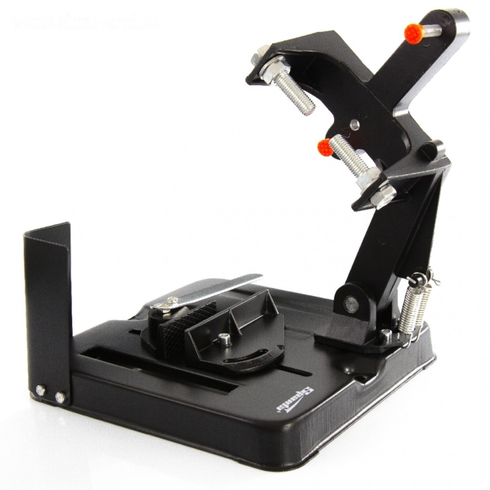 На приспособление устанавливают угловую шлифовальную машину (УШМ). Закрепив инструмент на данный станок, вы можете быстро и точно разрезать детали под различными углами. Универсальное крепление подходит для большинства УШМ с диаметром диска 230 мм.