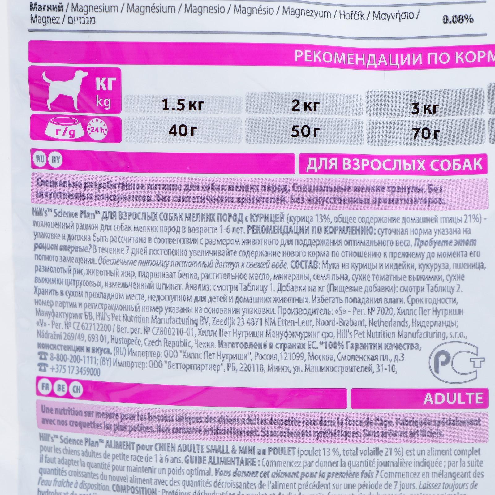 Сухой корм Hill's SP dog small&mini для собак мелких пород, курица, 1.5 кг